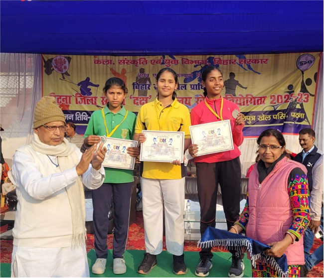 Priyanshi of class 8E created history by winning the gold medal in various categories. She was awarded a shield for individual championhip in under 17age group and selected for National game.