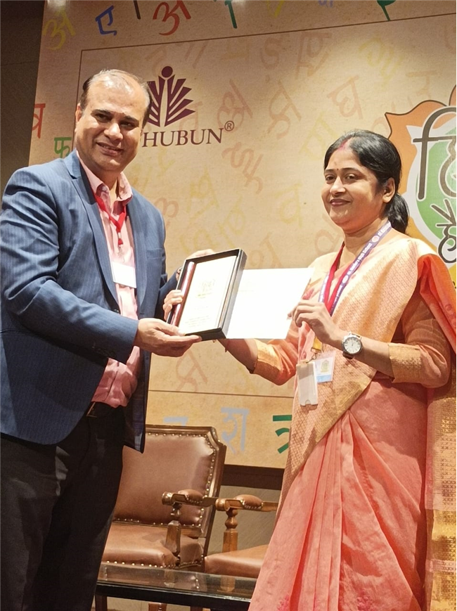 On the occasion of Hindi Diwas, a special event was organized by  Madhuban Education Publication to felicitate the Hindi teachers, especially for their contribution to the growth of our Rashtra Bhasha Hindi. About 150 Hindi teachers from all over the Country were invited at the 'PHD.CHAMBER OF COMMERCE' New Delhi. It was a great moment where many great educators were present. the famous television artist, Writer and the Poet Mr. Shailesh Lodha was the chief guest. The educator and Writer Mrs.Swati Lodha, Mrs. Reena Puri, the Editor of  "Amarchitra Katha" , Dr. Kshama Sharma, Bal Sahityakar and senior Journalist, The Managing Director Mr. Himanshu Gupta, The CEO Mr. Naveen Rajlani and The Chairman of Madhuban Educational Books Mr. Dinesh K. Jhunjhunwala were also present there. It was a proud moment for me when my name was announced as 'VIJETA' for my contribution in making  Hindi teaching special, progressive and creative.