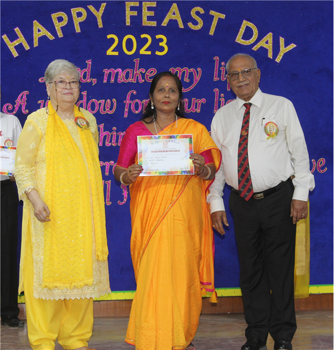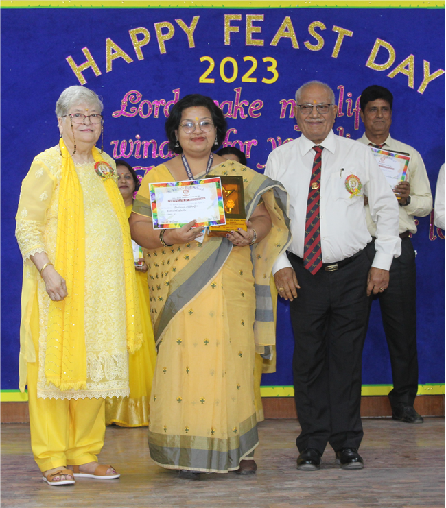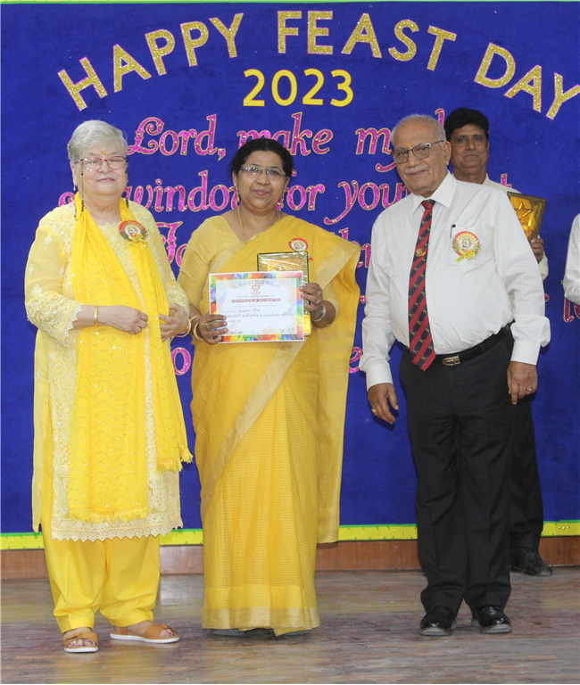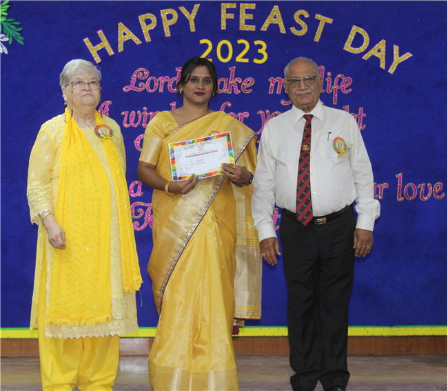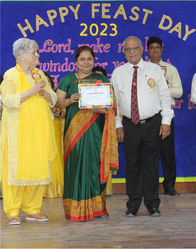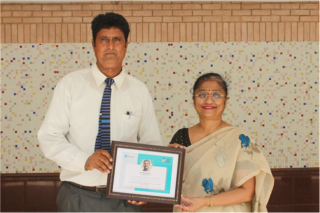 Mrs. Meena Tiwari received an award for perfect attendance reflecting her unwavering commitment to fulfilling her duties.