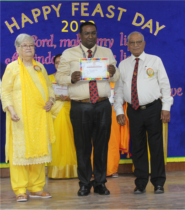 Mr. Vivek Sundara received an award for perfect attendance. This award recognises his dedication to imparting knowledge.