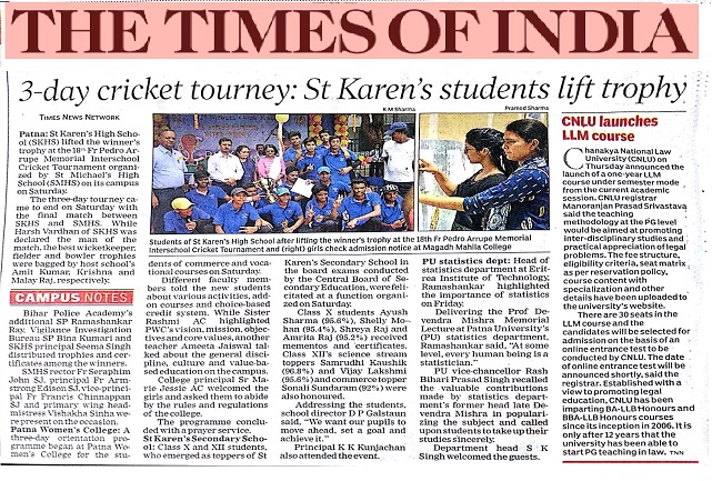 ST.KARENS HIGH SCHOOL LIFT THE WINNER TROPHY AT THE ST.PEDRO ARRUPE MEMORIAL INTER SCHOOL CRICKET TOURNAMENT WHICH ORGANISED BY ST. MICHLE'S HIGH SCHOOL INTO IT'S CAMPUS ON SATURDAY.