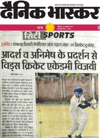 RAMANAND TIWARI MEMORIAL INTER-SCHOOL UNDER-14 CRICKET TOURNAMENT. Adarsh and Animesh k pradarshan se Vids Cricket Academy vijayi.