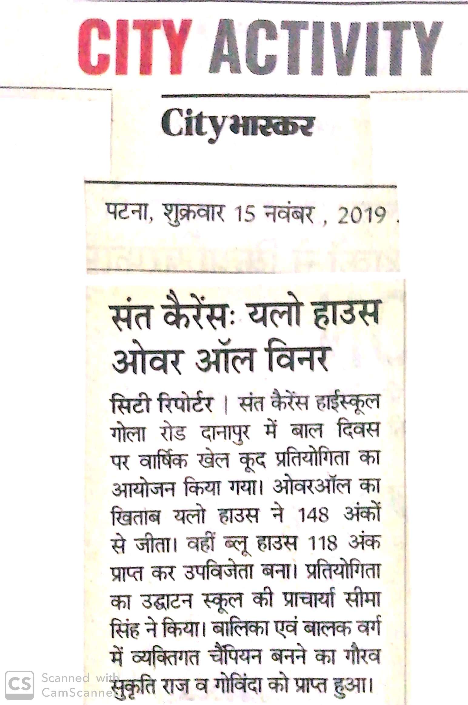 St. Karen's High School me Khel Khud Pratiyogita aayojan karwaya gya jishme Yellow house bana overall champion.