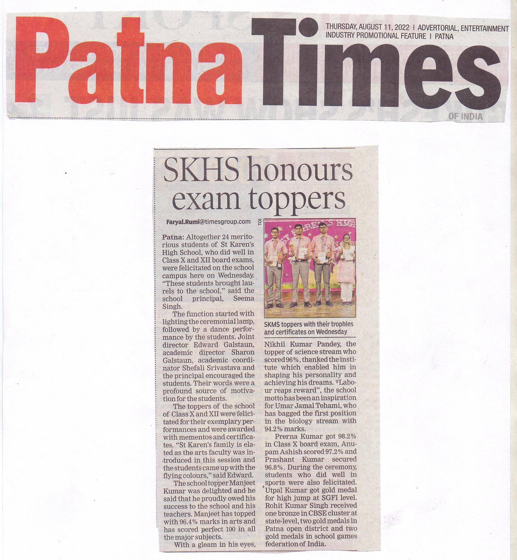Altogether 24 meritorious students of St. Karen’s High School, who did well in Class X & XII board exams, were felicitated on the school campus.