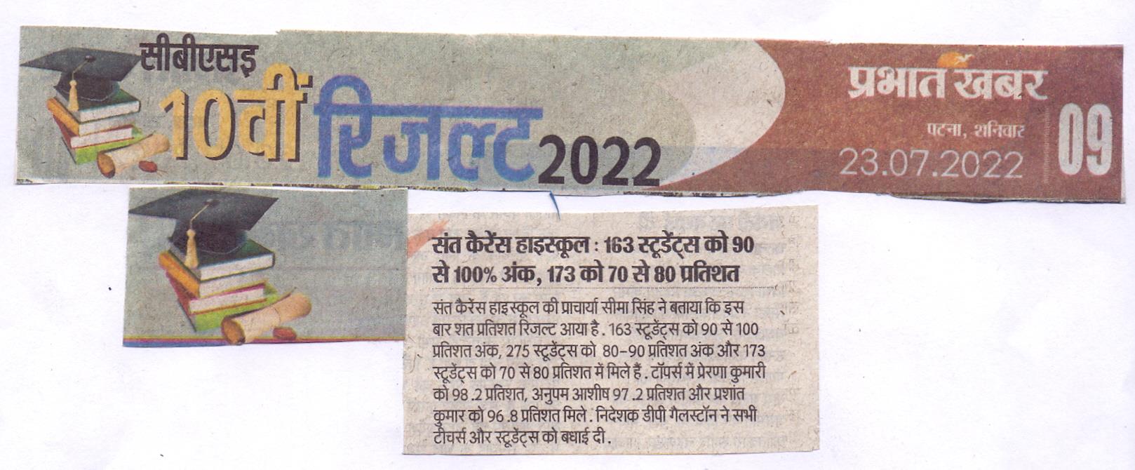 The hard work of our students, dedicated efforts of our teachers & blessings of our parents, our students has resultant in 100% results. 163 students are above 90%. The highest scorer’s Ist - Prerna Kumari -98.2% IInd- Anupam Ashish - 97.2% IIIrd Prashant Kumar- 96.8%