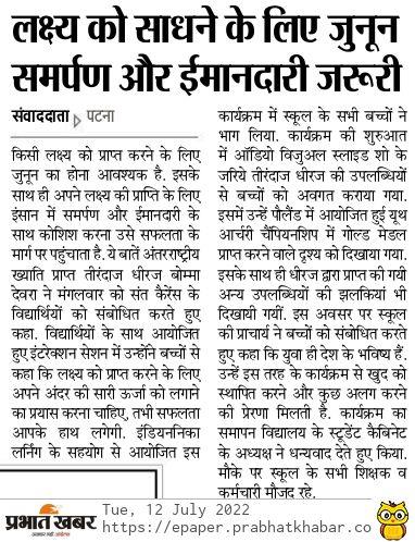 St. Karen's High School had the privilege of inviting Mr. Dhiraj Bommadevara young prodigy and conducting an interactive session with its students. Mr. Dhiraj Bommadevara highlighted that one must follow his/her passion with full determination, dedication, sincerity & give it all that you have only then success comes to you.