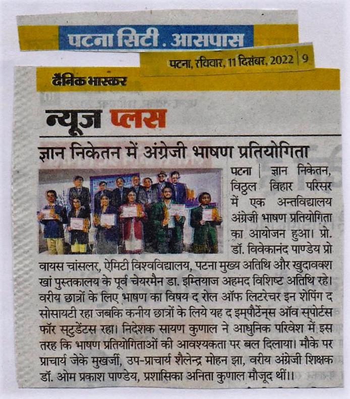 Anushka Sinha of class 8 E won the first prize in the Inter School Speech Contest held at Gyan Niketan on 10th December 2022.