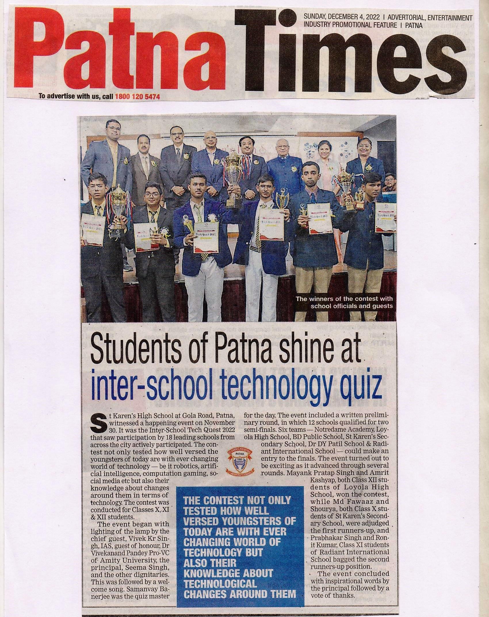 Students of Loyola High School bagged the first position in the Interschool technology quest at St. Karen’s High School