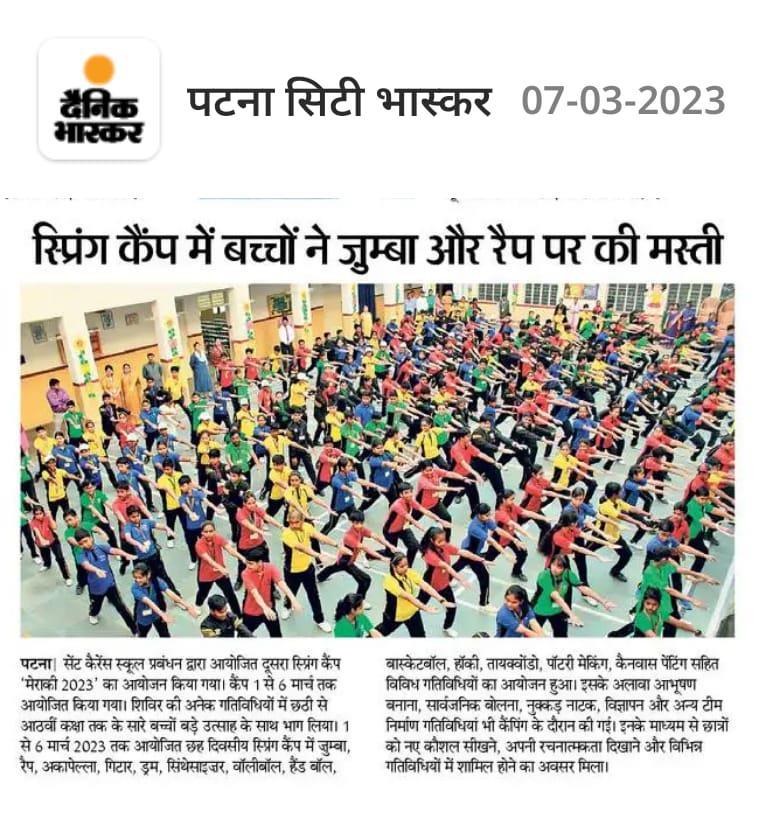 A Spring Camp Meraki-2023 was organised in the premises of St.Karen's High School from 1st of March to 6th of March 2023. The camp was divided into four groups-Literary Club,Music Club,Art and Craft Club and Sports Club.The campus was flooded with blooming faces and jubilant souls-the students of 6,7 and 8 of St.Karen's High School, St.Karen's Secondary School and St.Karen's Collegiate School.The inaugural ceremony commenced with lighting of the ceremonial lamp and releasing of balloons-symbols of freedom,thrill and exploring new vistas.The speeches by our Academic Director Mrs.Sharon Galstaun and Honourable Director Mr. D.P. Galstaun enlightened the students.They came to know about journaling and about discovering themselves.Every day began with a Zumba Session and then the Literary Club had their sessions on Public Speaking and Street Play on Environment and Cleanliness.RJ Shashi was invited to train the students on public speaking and motivate them.The Art and Craft Club had their sessions on Pottery, Dot Painting, Canvas Painting, Flower Making and Jewellery Making. The Sports Club trained the students in taekwondo,handball,basketball,hockey,chess,carrom and table tennis.The Music Club had their sessions on Classical Vocal with the introduction of a few ragas,training of playing keyboard, western songs,beats of drum and of course,a cappella, which the students enjoyed the most.On 4th March,the campers had a picnic in Sanjay Gandhi Botanical Garden.It was learning with fun,a prime objective of Spring Camp.