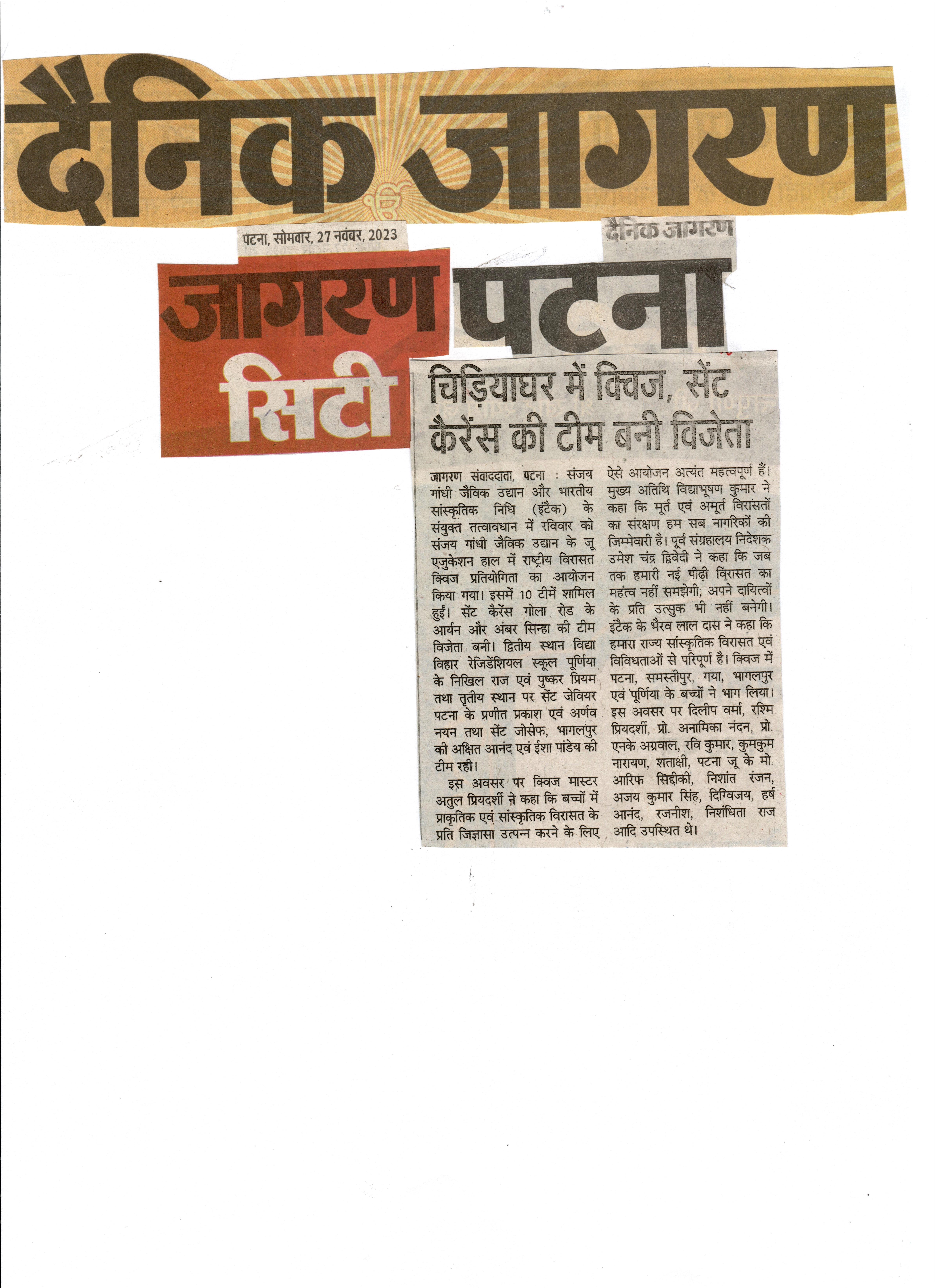 A QUIZ ON NATIONAL HERITAGE WAS CONDUCTED BY INTAC AND PATNA ZOO IN WHICH THE TEAM OF ST. KAREN'S HIGH SCHOOL CONSISTING OF AMBAR SINHA AND ARYAN BAGGED THE FIRST PRIZE.