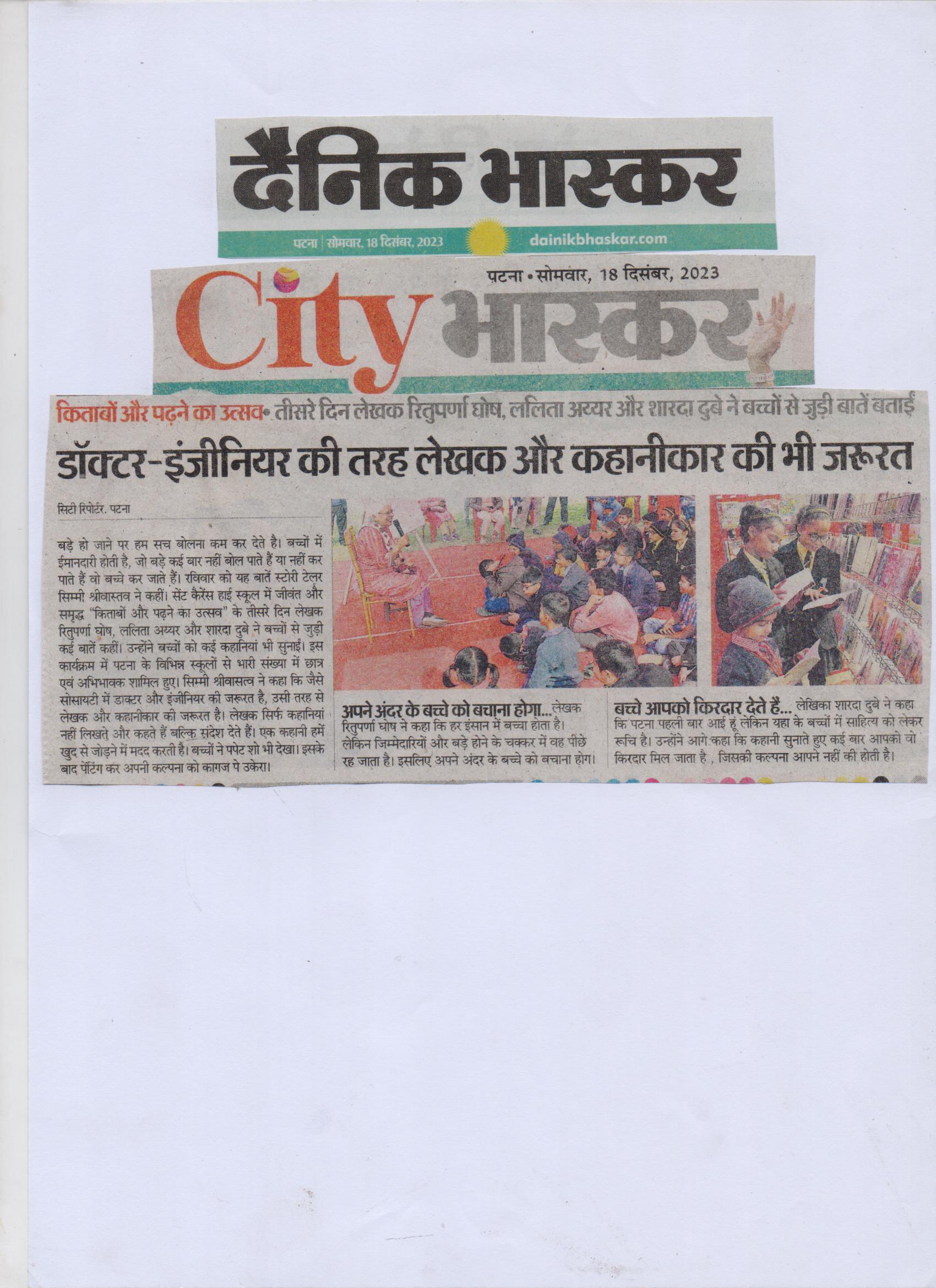 The Book Reading festival was held from 15th-17th December, 2023 in St. Karen’s High School. Famous writers of children’s novels visited the place and interacted with our students. Parents also joined the students and enjoyed the Lit fest. There were variety of activities for children and a cultural programme in the evening showcased by the students of different branches of St. Karens.