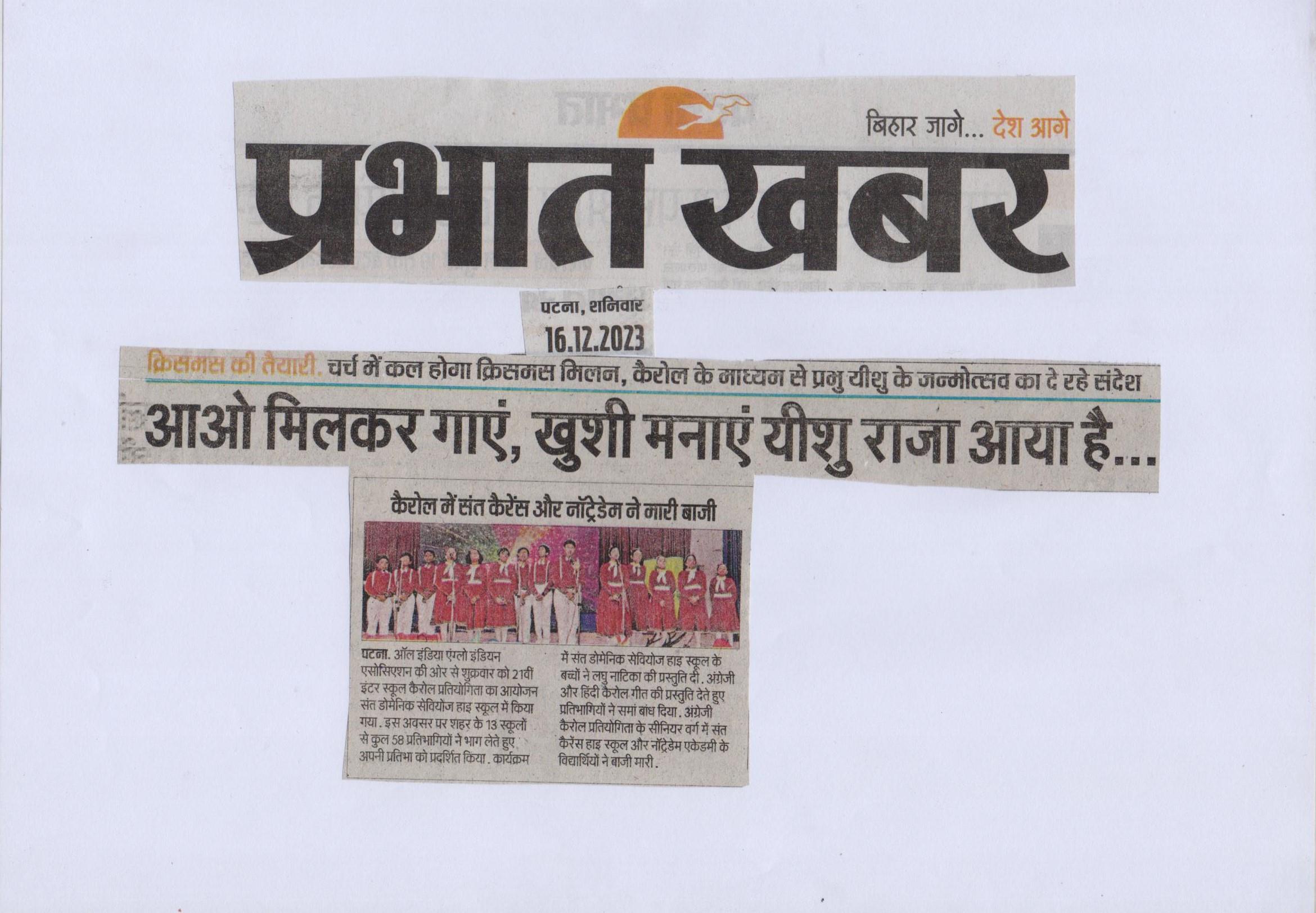 Inter School Carol Competition was held St. Dominic Savio High School in which St. Karen’s High School won the First prize. Altogether 13 schools had participated in this competition which was organised by the All India Anglo Indian Association.