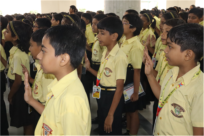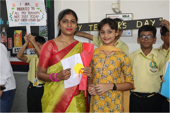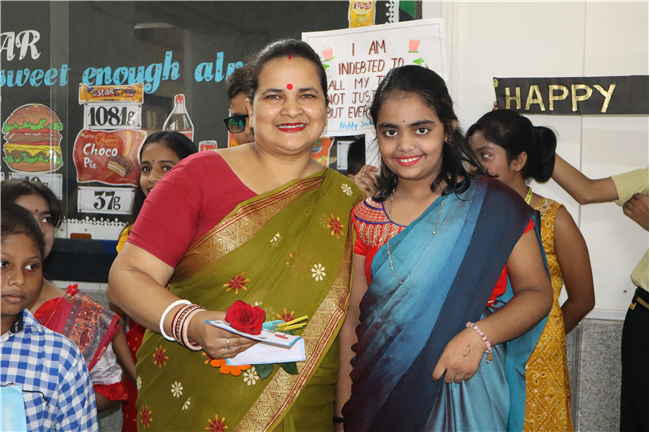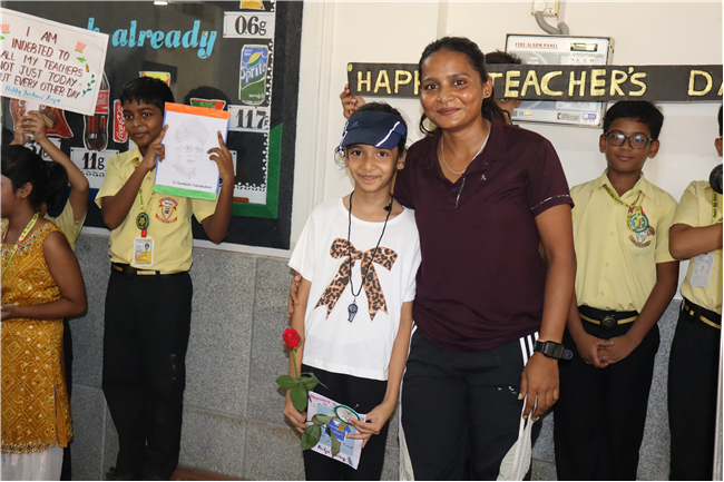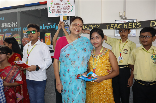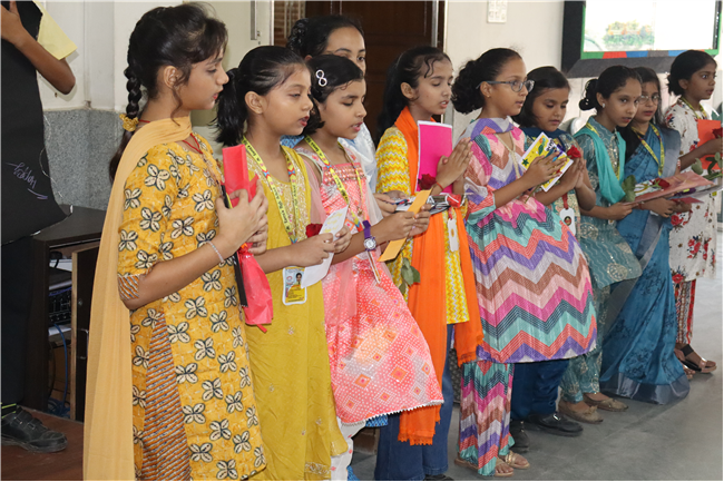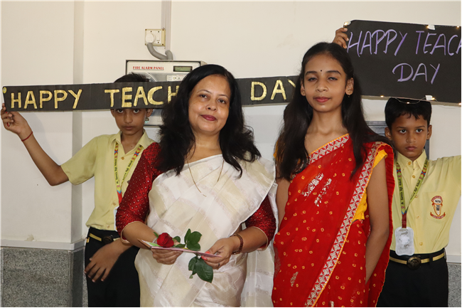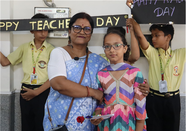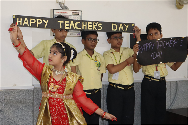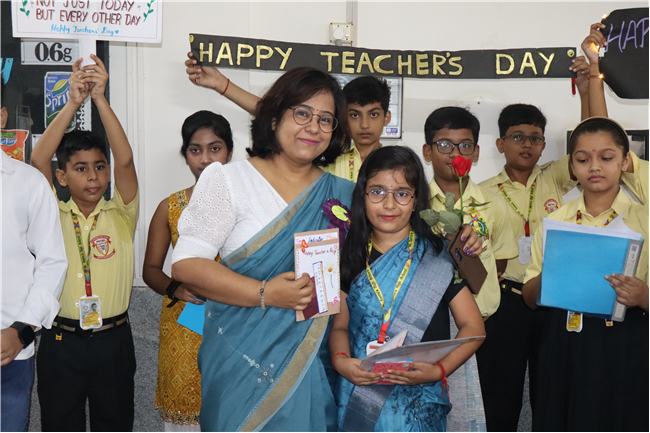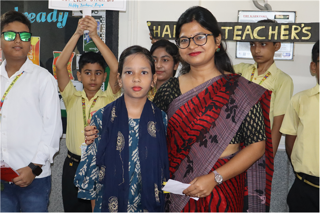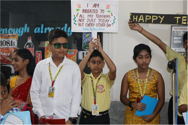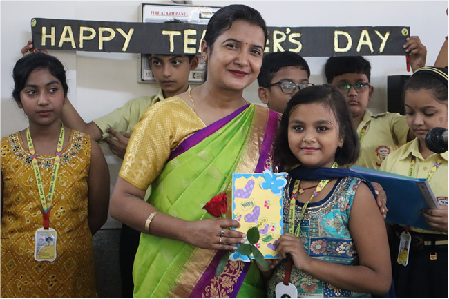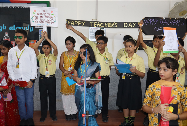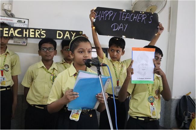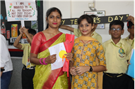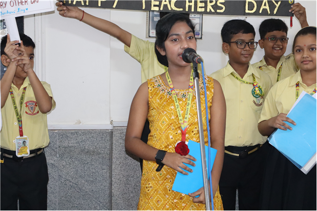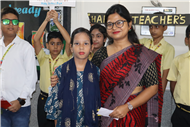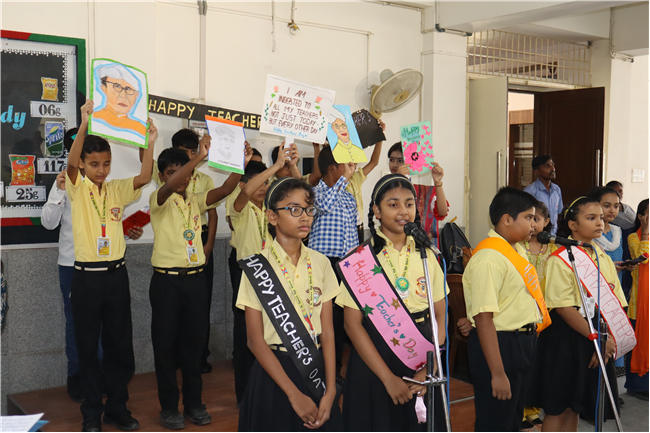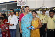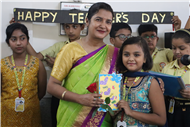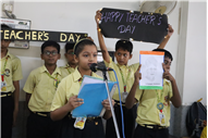 Teachers' Day was celebrated today at St. Karen's High School with zeal and enthusiasm. The day started with morning assembly, where students of Std 4, dressed like their Teachers and presented flowers and cards. A program was organized by the students, which comprised of speeches, self composed Poetry, dances and songs. They also presented handmade best out of waste items to their Teachers. The day concluded with a celebration in which all the teachers participated enthusiastically during the stayback. It was a fun filled day.
