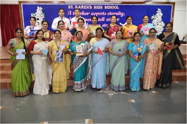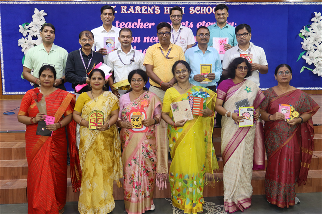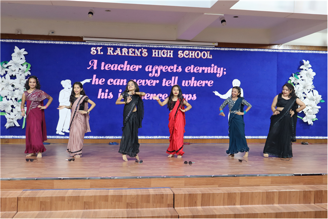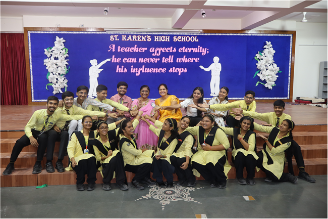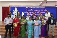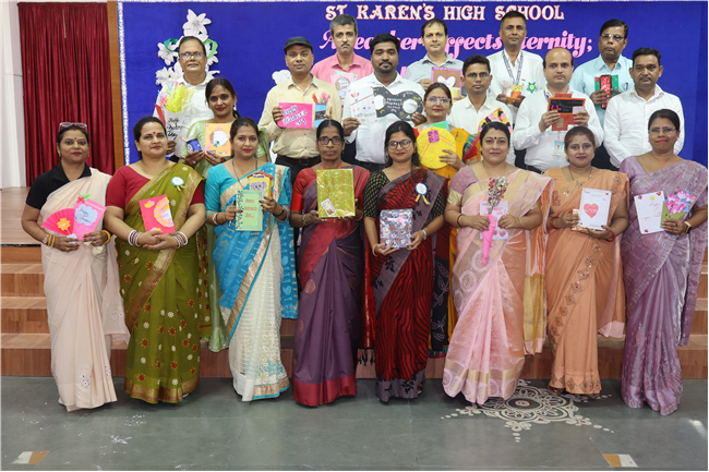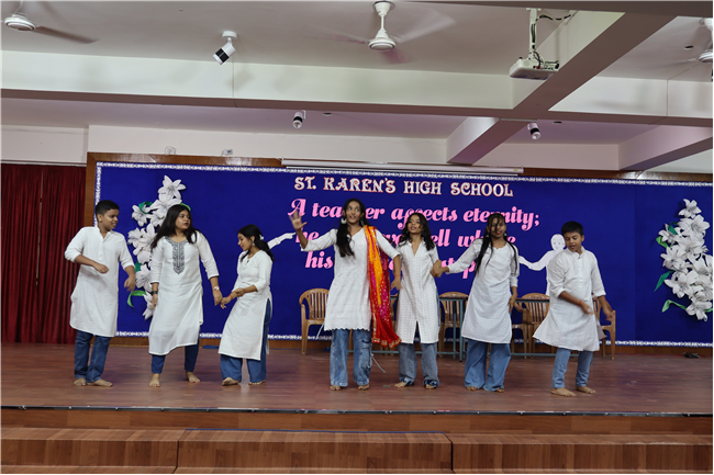 The day began with a special Assembly conducted by  the students of std 4 followed by a special programme in which the students from std 1-12 participated. It was a pleasure watching the little ones perform. The speeches delivered by the Headboy ,Harsh and the poem recited by the Headgirl,Padmaja made the  Teachers emotional and filled them with pride for their students as well as their profession.