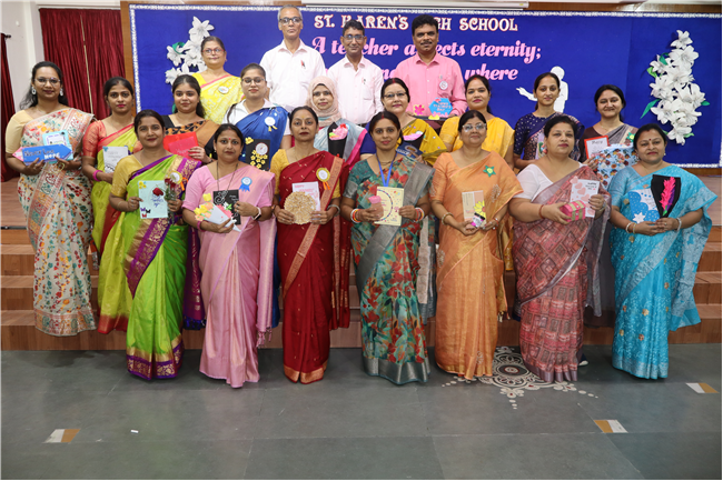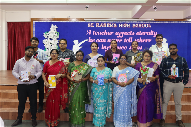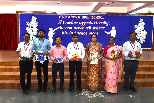 Teachers' Day was celebrated in our school today with great enthusiasm and joy.It was a gesture of gratitude and respect that the students showed through their power packed performance  and beautiful handmade cards and gifts made out of waste materials.
