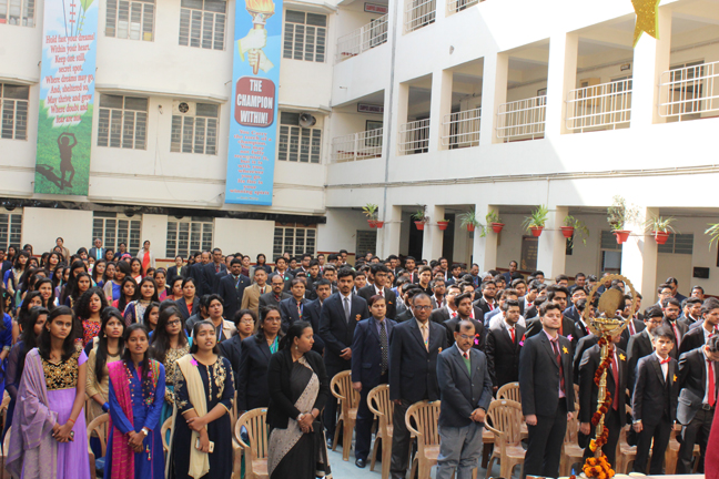 A farewell function was held on 28th January, 2017 to bid goodbye to the students of class XII for their future. The farewell party started at 9:30 A.M. All outgoing students had come dressed in their best formals. The ceremony began with lighting of the lamp which was done by our Hon'ble Director Sir and our Principal Ma'am.In the end prestigious titles of Master Karenite was given to Mr. Kunal of XII-E and Miss Karenite went to Archi Raj of XII-C.