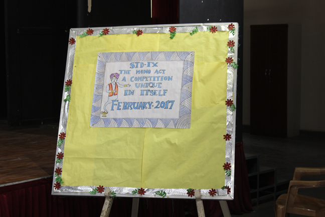 A mono-act competition was held in the Pamela Hall on 9th Feb 2017 for the ninethees. All the participants were dressed amazingly and performed their best according to the characters. The competition ended with an inspiring speech by the Director Sir. Riti, Riya and Sumit and Vaishnavi won the 1st, 2nd and 3rd prizes respectively.
