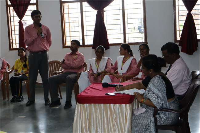 "Guided by the principle that 'Feedback is a gift, and ideas are the fuel for future success,' a student forum was held on 2nd September 2024 for the students of class XII." During the forum, students had the opportunity to express their concerns to Principal Mrs. Seema Singh and +2 Incharge, Mr. Michael. The event was a resounding success, with students enthusiastically sharing their ideas and perspectives."