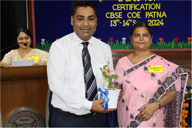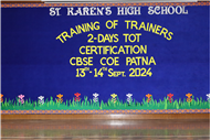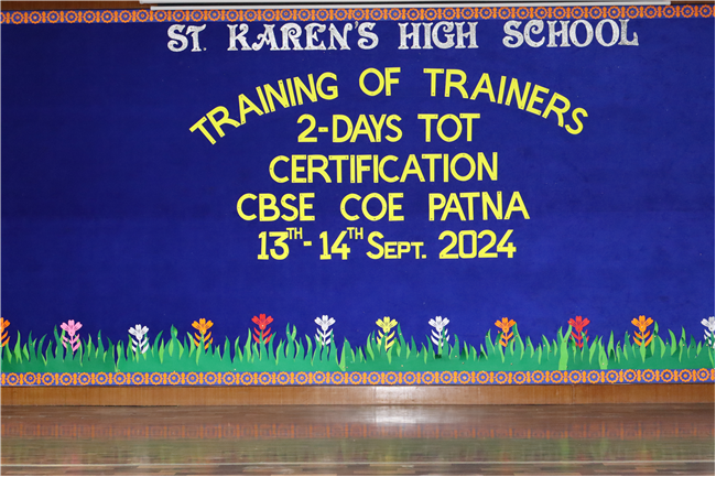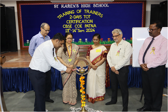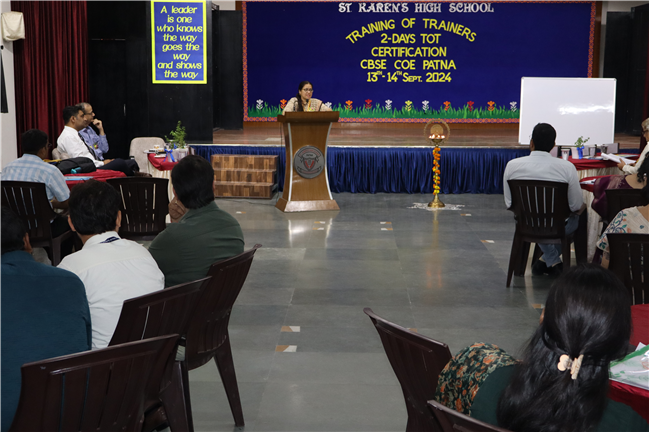 St. Karen's High School is proud to announce that our esteemed Principal Ms. Seema Singh, Vice Principal Shri Sanjay Joseph, Senior Coordinator Ms. Subhadra Singh, and PGT Ms. Shalini Singh were selected and nominated by the CBSE Centre of Excellence to participate in a prestigious two-day pilot Training of Trainers (TOT) program, hosted by our school on September 13 and 14, 2024. This significant event, organized by the CBSE COE under the leadership of Mr. Ravi Prakash, featured rigorous training from experts from the Department of Personnel and Training (DoPT), Government of India, in collaboration with the Institute of Secretariat Training and Management (ISTM). The 20-hour program, attended by 65 participants, is designed to equip educators with the skills to deliver standardized course content nationwide, aligning with the goals of the National Education Policy (NEP). St. Karen's High School is committed to working with the visions of CBSE and the Government of India, and our school management is always eager to share responsibilities to ensure education with values for every citizen of India. This achievement marks a significant step forward in fostering educational excellence at our institution.