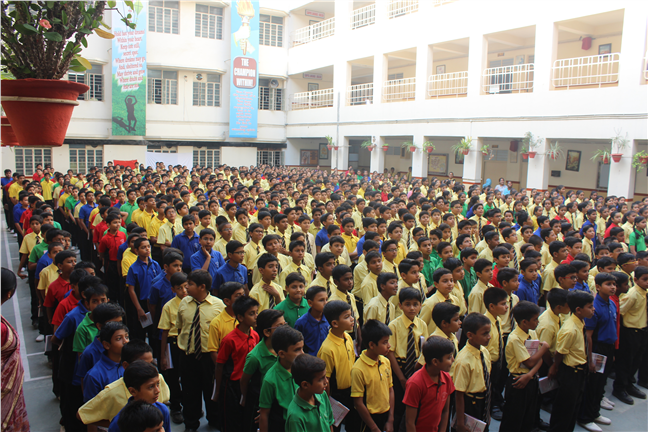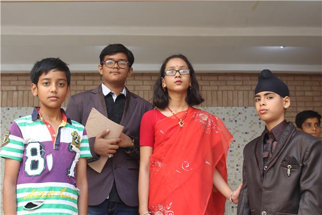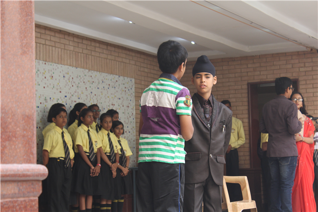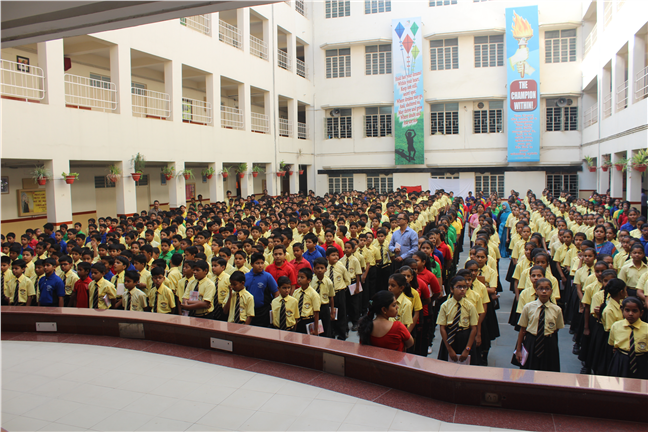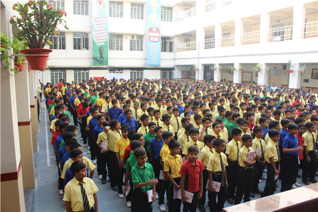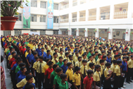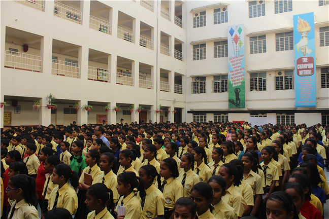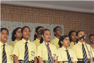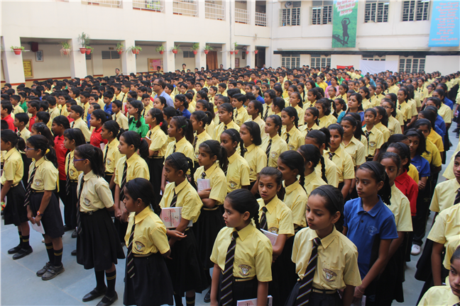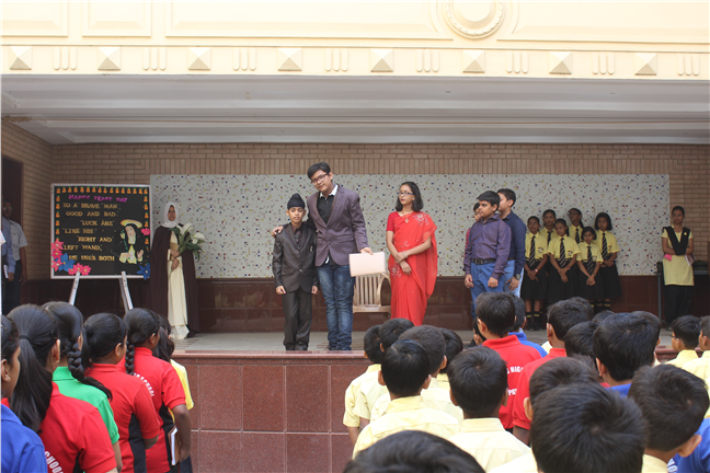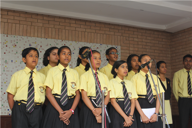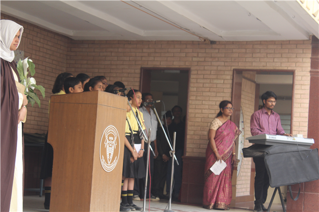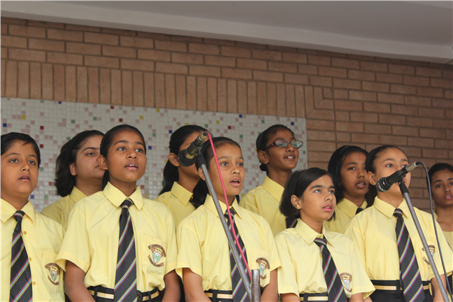The assembly started with the morning prayer led by Aashutosh Aarya of Std.V followed by “Thought for the Day” by Gungun from Std. IV. A choir comprising of students from IV and V sang and performed on a special song.