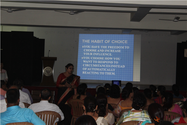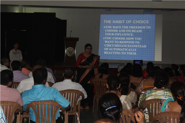 A workshop for teachers on "Seven Habits of Highly Effective Educators",was conducted by Mrs. Bhagwanti Gupta and Esha Gupta,Student (NIFT, Delhi) on 16th June, 2017. The module discussed the personality traits of successful teachers. The Seven habits form an all round personality of a person which is much needed in today's world.