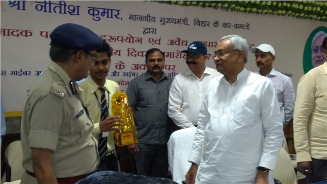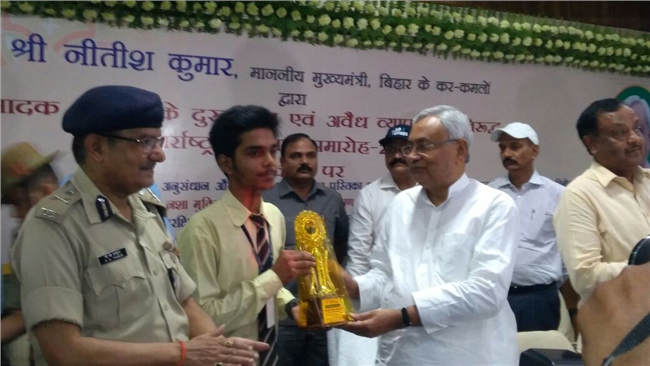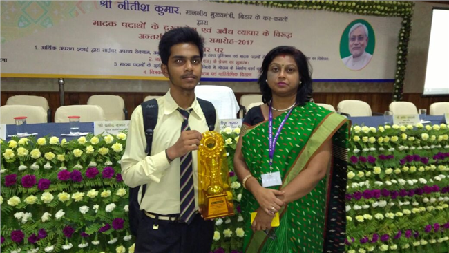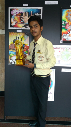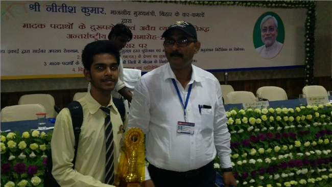 Description: A painting competition was organised by the " Economic Offence Unit " on 23rd June,2017, It was hosted by the Police Officers of different departments of Bihar. The topic was "International Day Against Drug Abuse". Twenty Schools participated and the total number of entries were seven hundred and fifty. Sudhanshu Shekar of St.Karen's High School bagged the 3rd prize, which was given by our Honourable Chief Minister Sri Nitish Kumar.