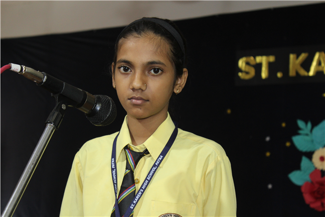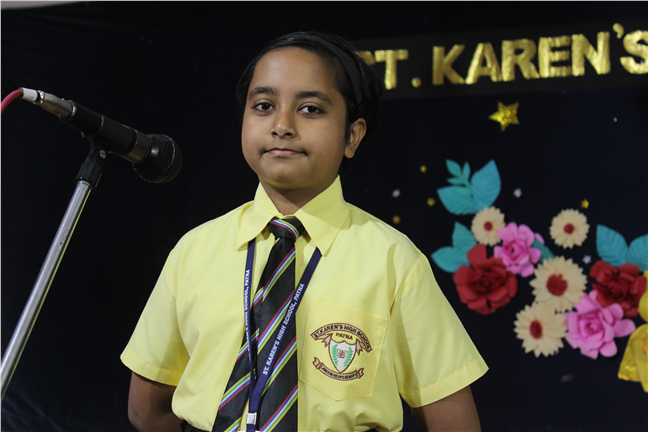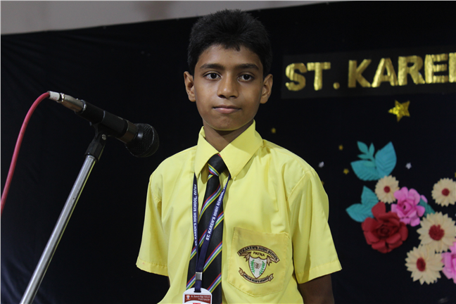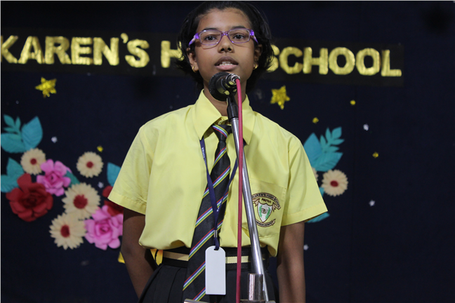 Description: The English Elocution competition for class VI took place on 14 July 2017. There were 14 participants in all. The students recited poems in a wonderful intonation. There was a tough competition among the contenders. They were appreciated for their excellent oratory skills.
