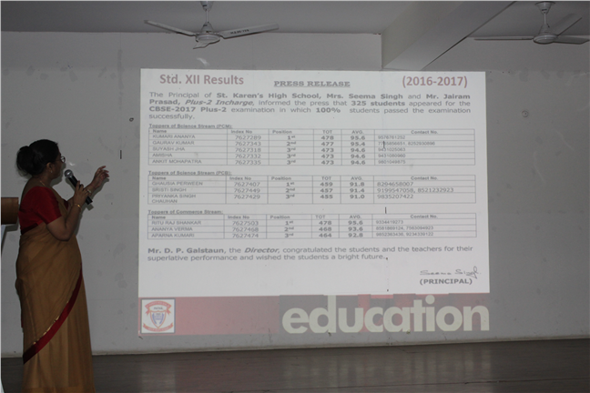 The Orientation Ceremony was organized on 28th July, 2017 for the Students of class- XIth who had taken admission in the session 2017-2018. The orientation was presided by the principal Mrs. Seema Singh who informed about the rules and regulations to be followed by the students. She talked to the parents guiding them to encourage their ward for regular attendance and sincere studies. The teachers of the higher secondary school were introduced along with non-teaching and technical staff. The ceremony ended with the information of the commencement of the classes for class – 11th and an expectation of mutual cooperation from the parents in the teaching learning process.