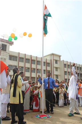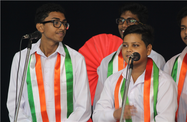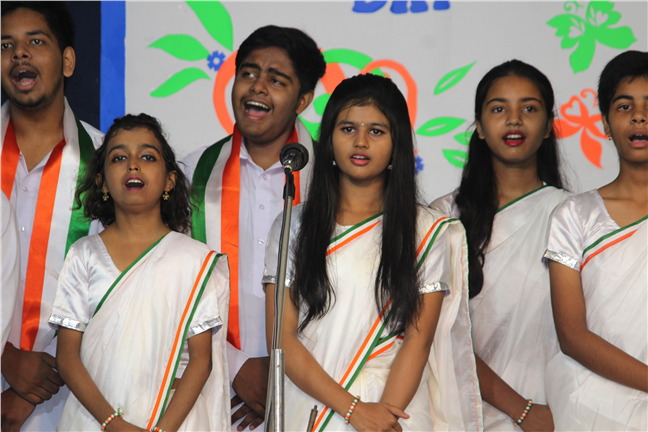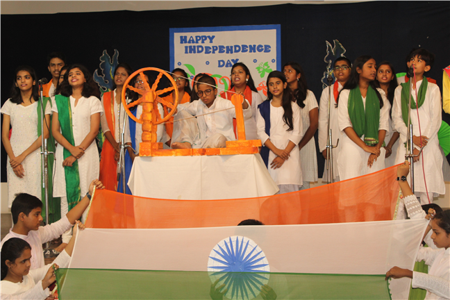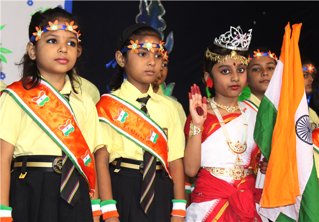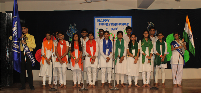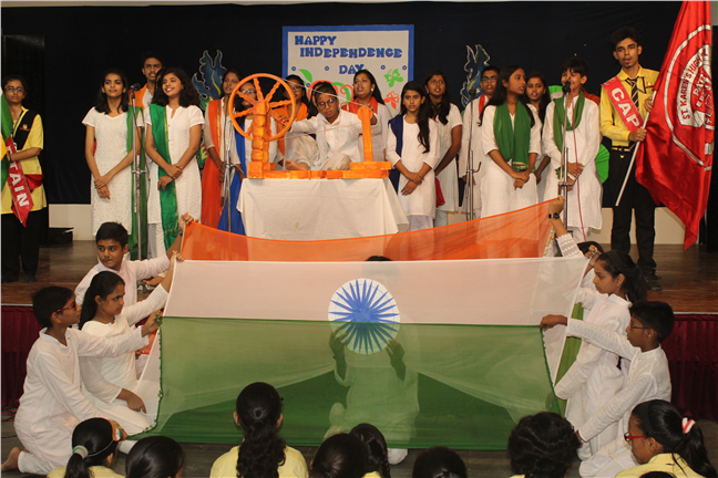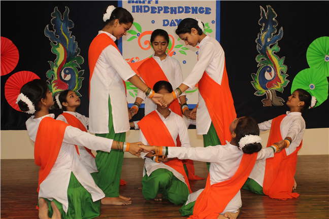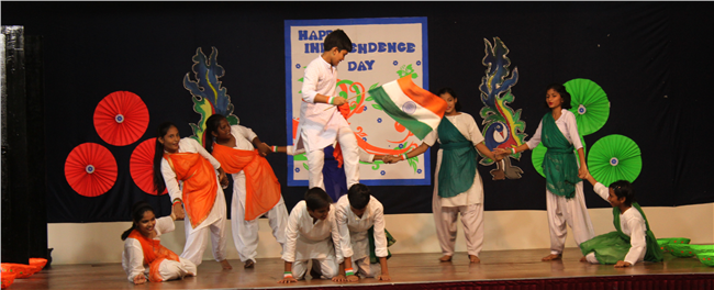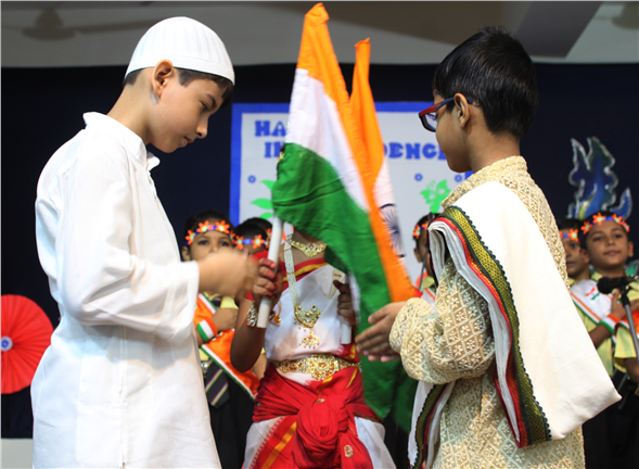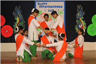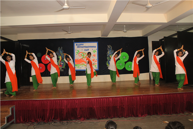 The Independence Day Programme commenced with the flag hoisting by the school principal and vice principal at 8 am on the school play ground. It was followed by a commendable cultural programme performed by the students. The four houses presented patriotic songs which instilled the spirit of country love. The primary wing students presented songs and group dance which added to patriotic fervour. The audience was addressed and blessed by Director Sir's speech. The hall thundered with excitement when the Principal conducted a quiz for the parents, teachers and students. The programme ended with the vote of thanks proposed by the vice principal.