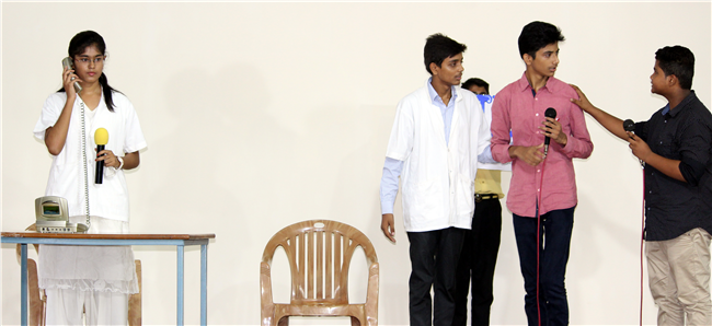 Description: The Auditorium thundered with the dialogues of the actors who had put up a Skit on Personality Development. The Skit Show was organised on 2 August 2017 by the students of class X. Each class had presented a play conveying a moral issue or values of life. This activity was conducted to bring about awareness among the students regarding personality traits and discipline. Each class had put up an excellent show which was heartily appreciated by Director Sir and the teachers present as the audience. The performance of all was invaluable and beyond expectations.