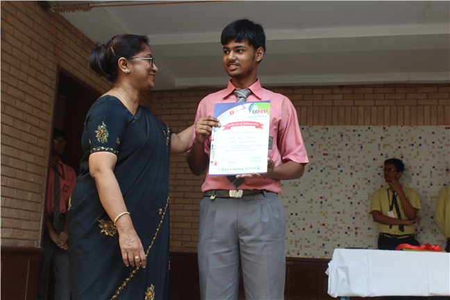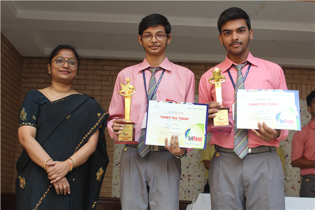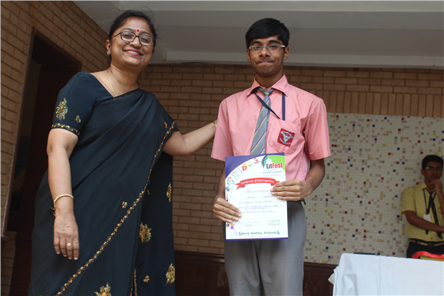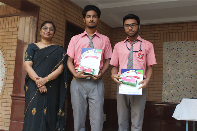Description: The Karenites had put up an exemplary performance in the LITFEST 2017 organized by Litera Valley School, Patna from 14 Oct. to 17 Oct. , 2017. There were several events in which 15 renowned schools of Patna had participated. The students bagged many prizes in different events. The list of winners is as follows:- 1. Mehul 12A & Jyotiraditya 11 E - 1 st position - Senior Quiz Competition. 2. Jaidev Das 12-B & Siddharth Verma 11-B - 2nd position - Web page Development. 3. Pratyush Raj 10-E - 1st position- English Poetry Writing 4. Sudhanshu Shekhar 10-J - 2nd position - Face Painting 5. Jayant Das 12-B- 2nd position - Short story writing 6. Moitrinika 9-F - 2nd position- Hindi Story Writing. All the participants exhibited exemplary performance. They were felicated by the Principal in the school assembly as well. Kudos to them.