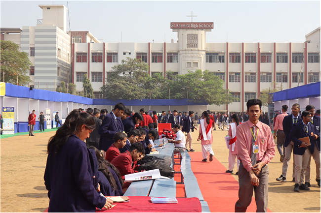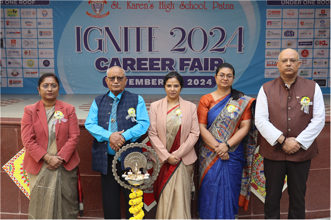 Description: St. Karen's High School Patna hosted a Career Fair - IGNITE-24 on 30th November 2024. More than 65 universities and colleges of repute from all over India participated in it. Amity University, Ashoka University, Chanakya University Bengaluru, Christ (Deemed to be University) Delhi NCR, ICFAI University, Lovely Professional University, SRM University Delhi NCR Sonepat, Azim Premji University, Sikkim Manipal University of Technology, Bangalore School of Design were a few of the long list which actively participated by setting up informative kiosks to provide valuable career guidance. The Chief Guest for the occasion, Col. Rahul Sharma, Director, NIFT - Patna inaugurated the event and addressed the audience reiterating the opportunities such events provide to the students. Mr. D. P. Galstaun, Director, St. Karen's Group of Schools, encouraged the students to make the most of the opportunity to see themselves in one of the prestigious organisations in forthcoming years. One of the major attractions of the event was slogan writing, caption writing and caricature competitions which stressed on the creative side of the students.