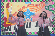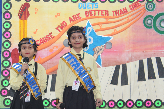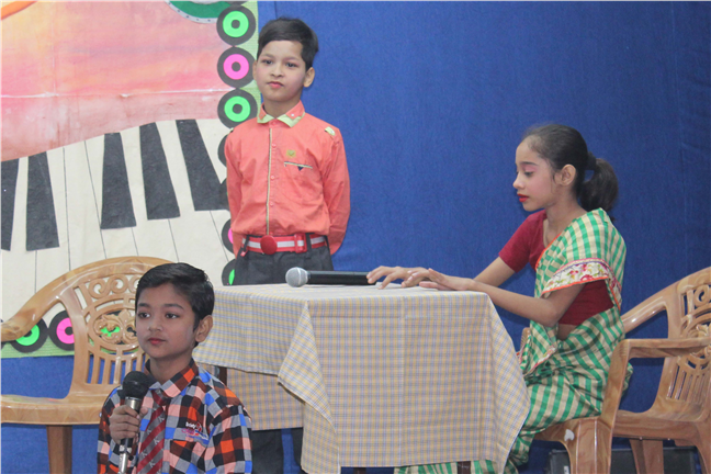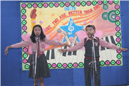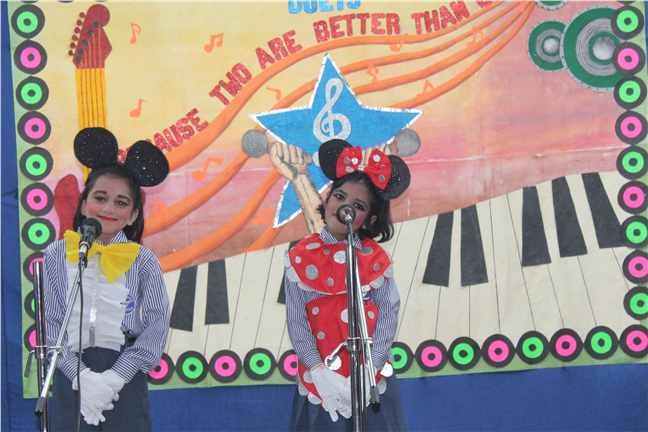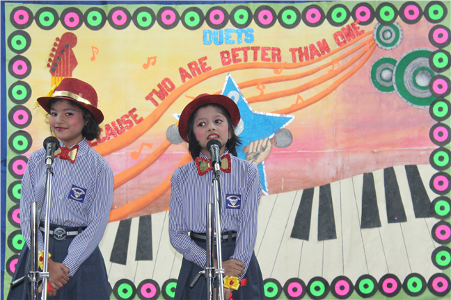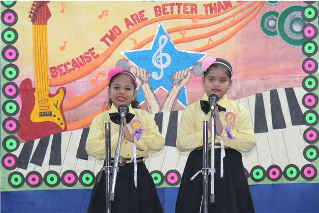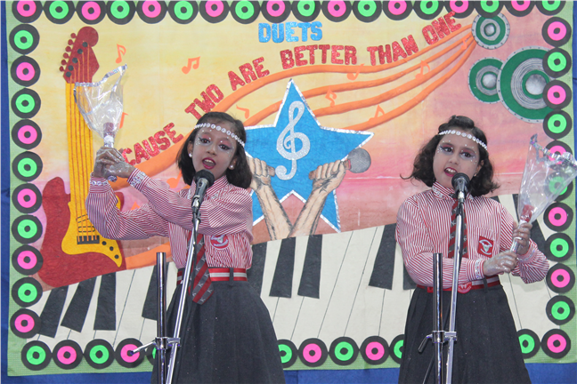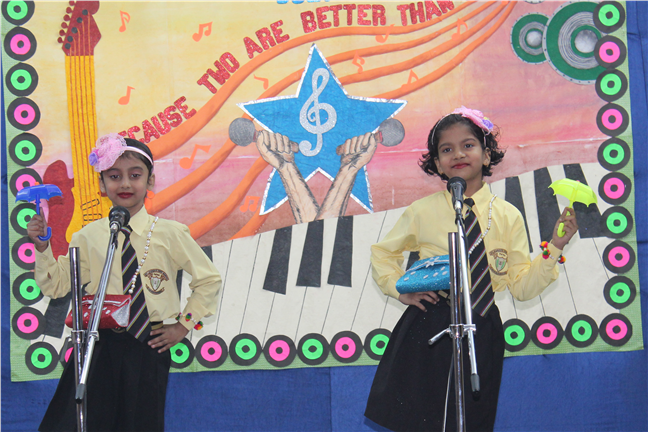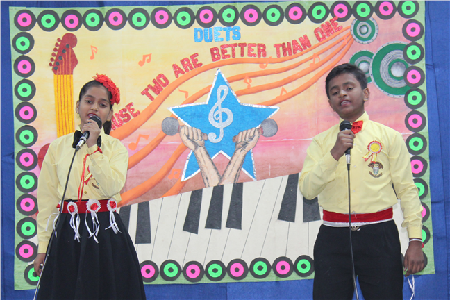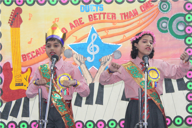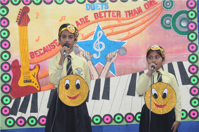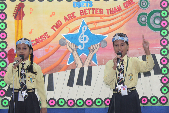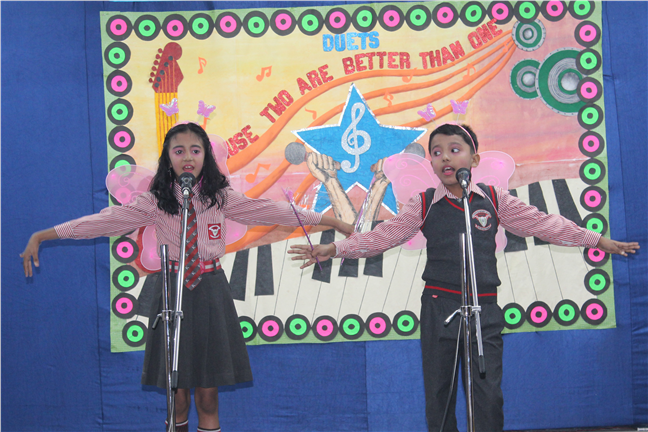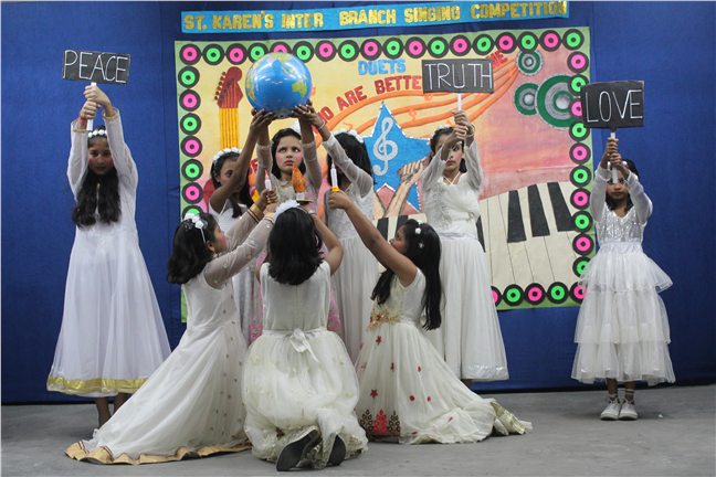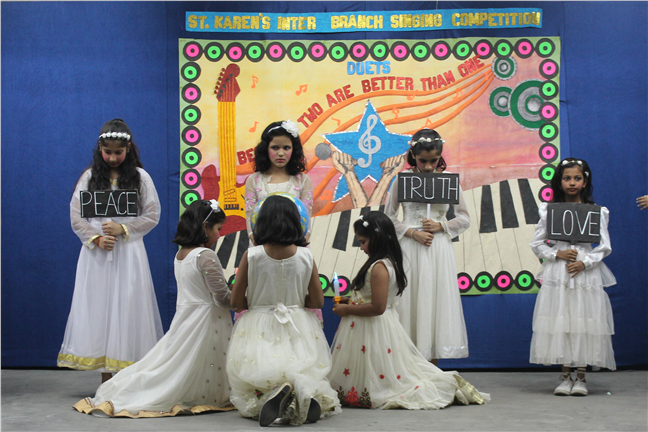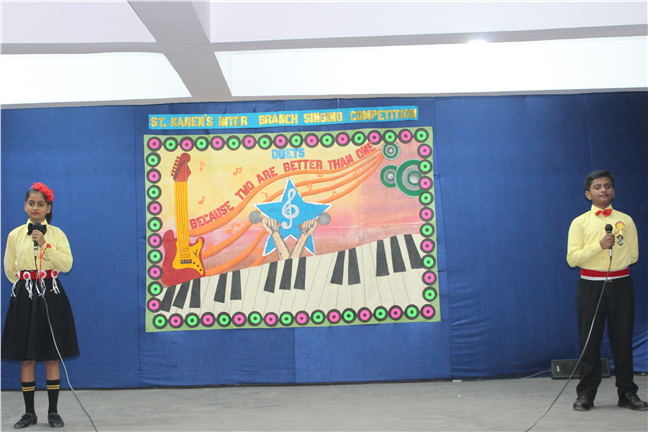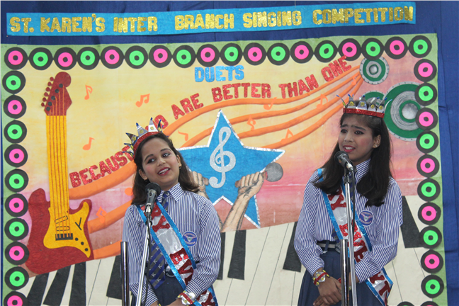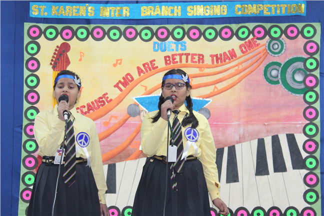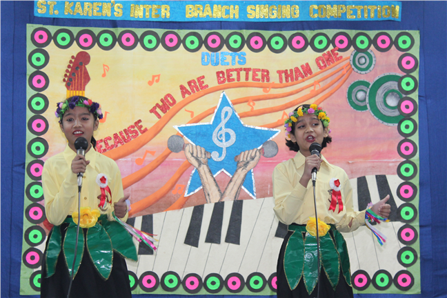 Description: An Inter School Duet Singing Competition was organised in St. Karen's Primary School on the 13th Nov,2017. All four schools ( St. Karen's Primary School, St. Karen's Secondary School, St. Karen's High School, St. Karen's Montessori School) participated in it and the children filled the air with their melodious singing to foot tapping beats. "The Chief Guest" for the occasion was Rev. Father Gregory Gomes and "The Guest Of Honor" was Sister Sophie. The song was based on inspirational songs from animated movies. The following students grabbed a position in the Group C Category: 1. Anushka Sinha- III (B). 2. Prachi - III (A).