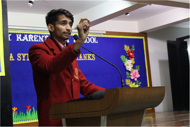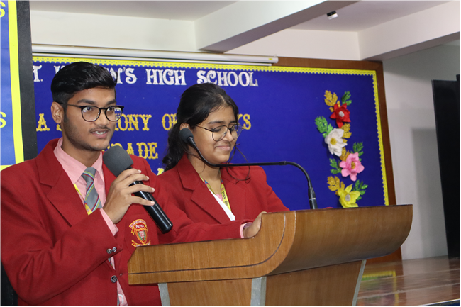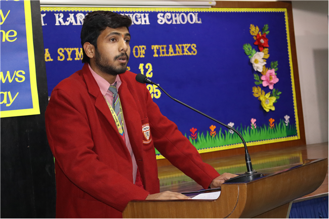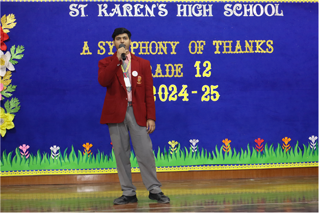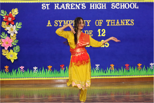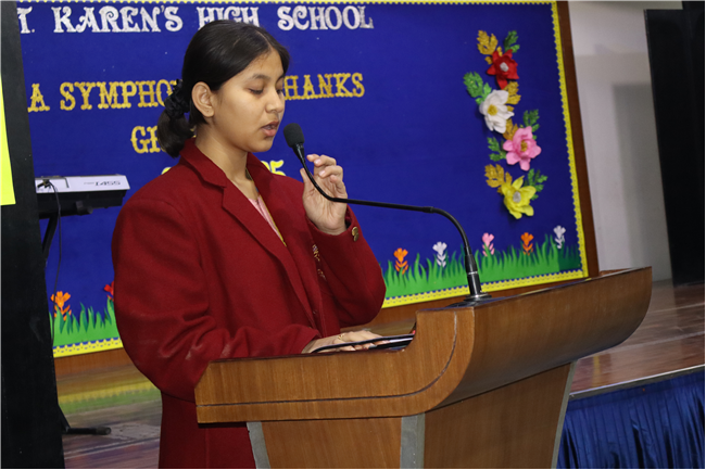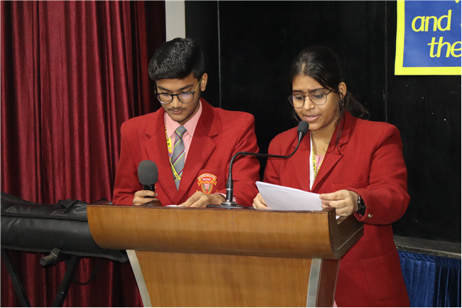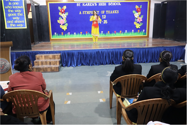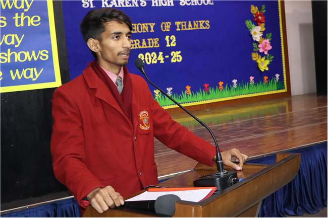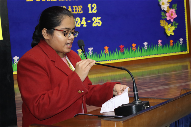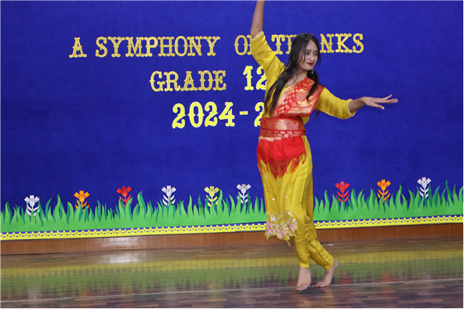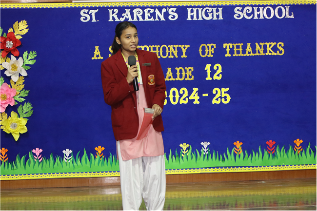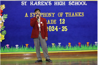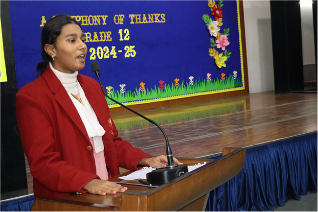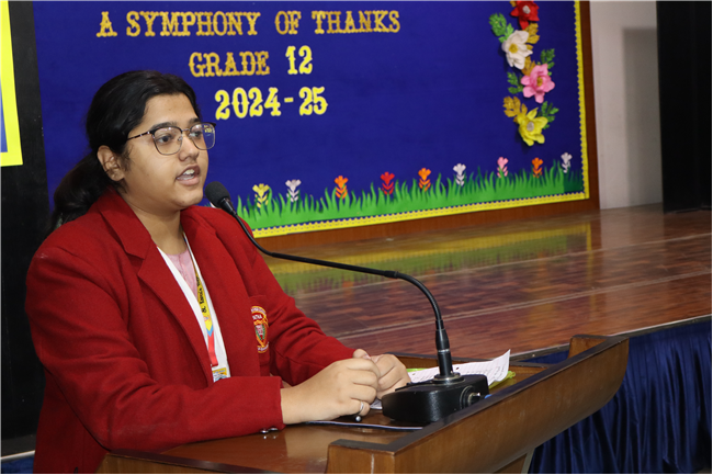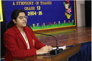 Description: On January 9, 2025, Class XII (2024-25) organised a special assembly, Symphony of Thanks. The event featured a prayer dance, gratitude speeches by the Head Boy, Head Girl, and students from all streams, expressing their thanks to teachers and the school for countless opportunities. The lively assembly included stand-up comedy, dances, and musical performances, delighting the audience. Principal Mrs. Seema Singh praised the students and encouraged them to continue striving for excellence, making it a memorable and heartfelt farewell.