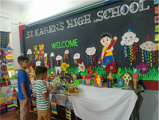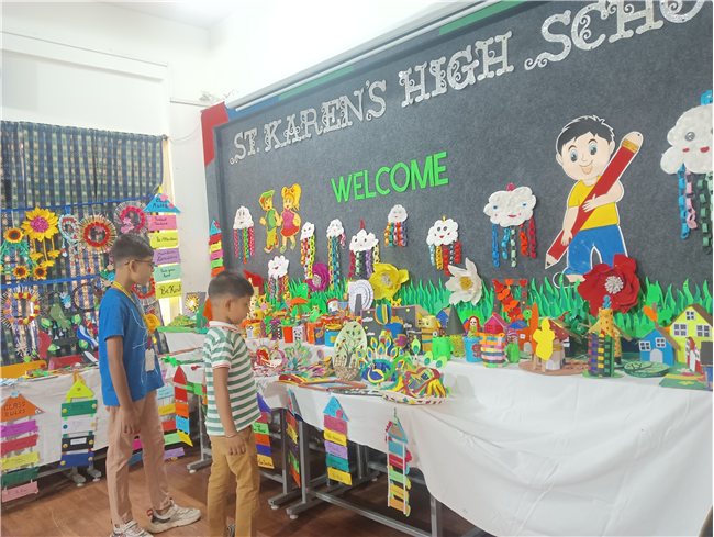 On 27th March, the students of std 1-5 and std 11 participated in the much-awaited art exhibition, and it was a resounding success. Parents thoroughly enjoyed the exhibition, appreciating the creativity and effort put in by the students. Everyone was amazed by the unique artwork, especially the use of bamboo soop and dagra, which added a traditional touch. The event was a true celebration of talent, leaving a lasting impression on all who attended.