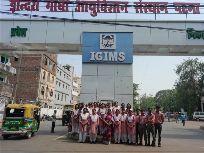 Psychology Students of Class XII visited IGIMS, Patna on April 17th, 2025. Dr. Rajesh (HOD and Professor of Psychiatric department, Ex-faculty of AIIMS, Delhi) addressed the students. The students had an interactive session with him where he motivated students to choose Psychology as their career. The visit aimed at providing insights into the medical healthcare field, especially mental health. They learned about various medical specialties, skills and visited different wards where they witnessed patients and gained insights into diagnosis and treatment. The visit highlighted positive, clinical and forensic psychology. They also learned techniques for measuring burnout levels and gained a unique understanding of human behavior and mind