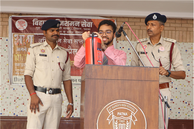 On 21st May 2025, Officer Shiv Shankar Yadav and his team from the Fire Fighting Department conducted an informative demonstration on fire fighting techniques and safety measures at St. Karen's High School. The session was attended by class monitors and student council members from Std 6 to Std 12, along with the administrative and support staff. The demonstration aimed to raise awareness and equip participants with essential skills to respond effectively during fire emergencies. The event was both educational and engaging, emphasizing the importance of preparedness and quick action in crisis situations.