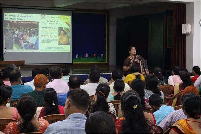 Description: On 19th October,2024, St Karen’s High School organised a highly enlightening and captivating workshop on “Productive Parenting” for the parents of Class 10. The session was conducted by Mrs. Salony Priya, Founder Director of Ummeed Counselling and Consulting Service. This workshop primarily focused on positive parenting, empowering parents with effective strategies for nurturing successful, well- adjusted children and also being with teenagers with love and logic. In this session, Mrs Salony Priya continuously guided the parents with practical techniques for fostering emotional intelligence self-discipline and resilience. Her insights and interactive approach made the workshop incredibly valuable and the parents felt more confident in their parenting abilities.