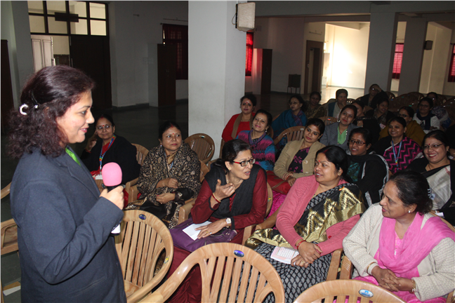 Description: A workshop was conducted for the teachers by Mrs.Roli Swarup, Mrs.Vandana Kishore and Mr.George Alok Mitra on the topic of Life skills and Class Management. It was an interactive session enriched with learning.