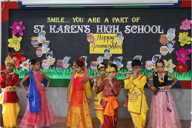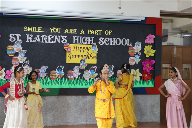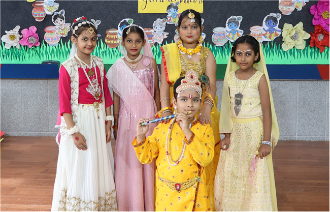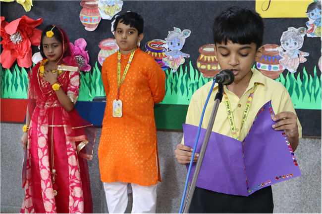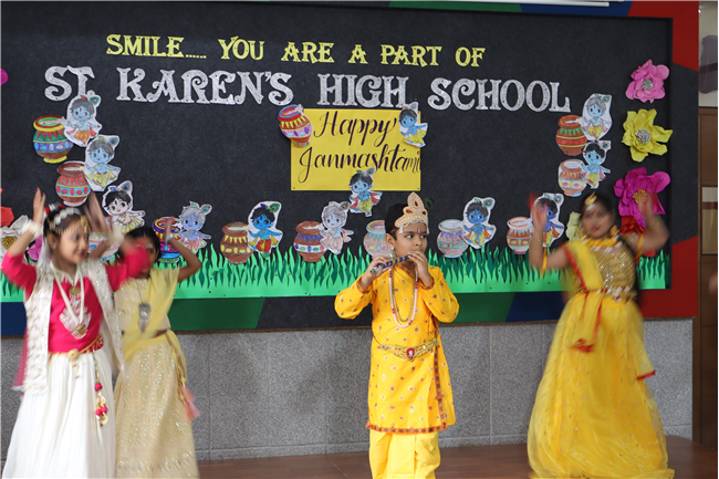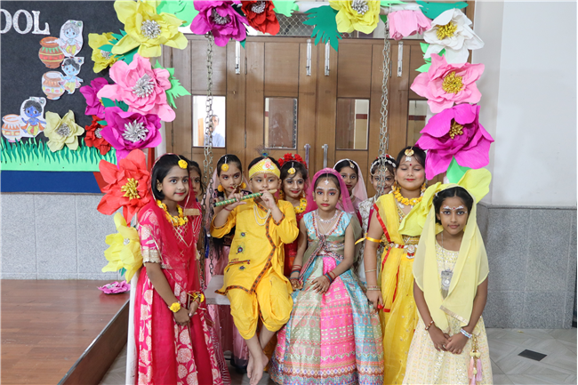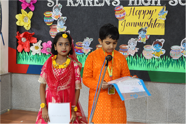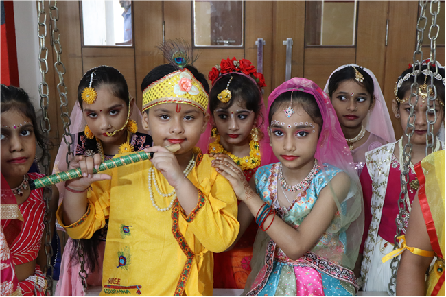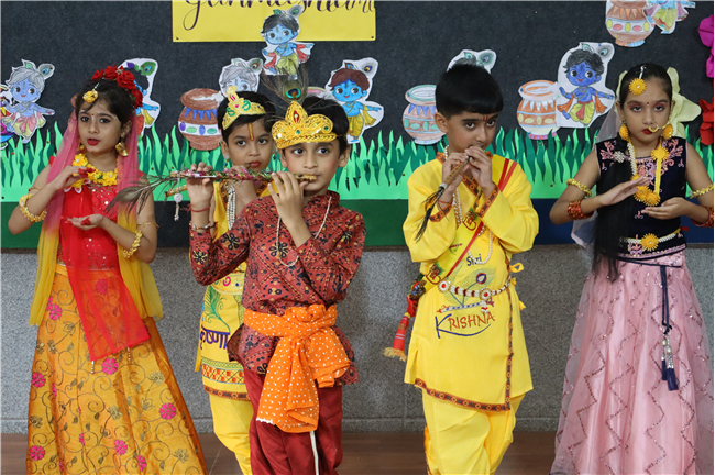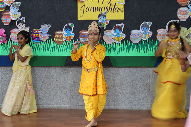 Children of Std 2 participated in the attire of Radha Krishna, they showcased beautiful dance and a skit on the life of Lord Krishna.