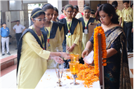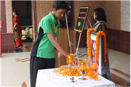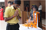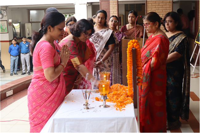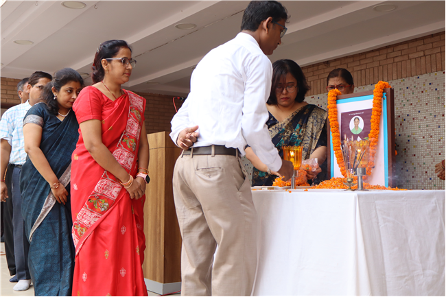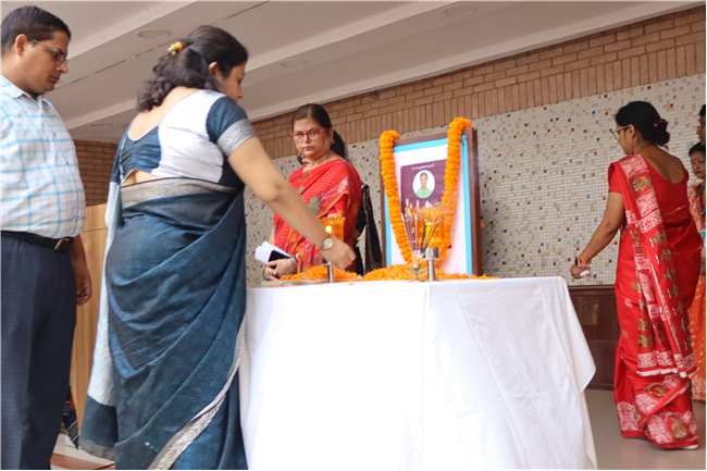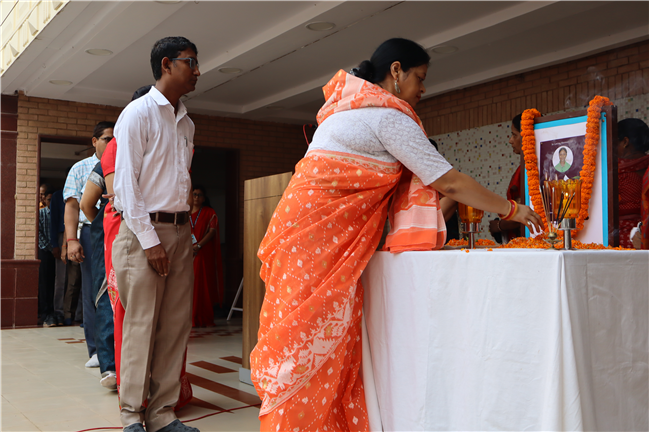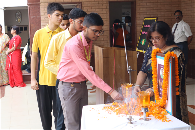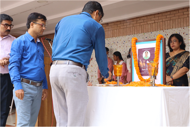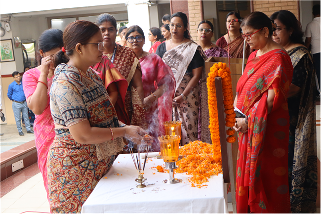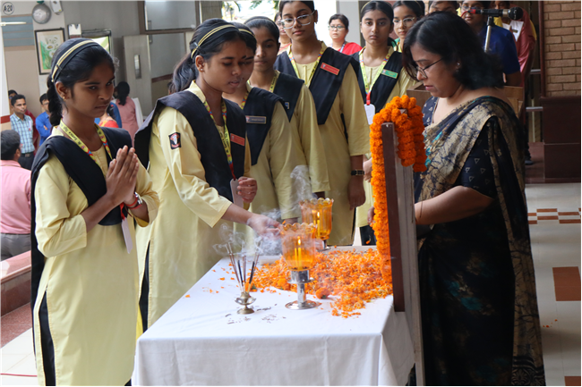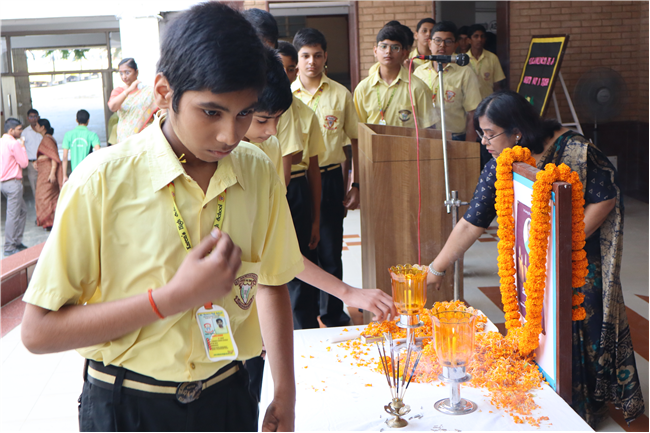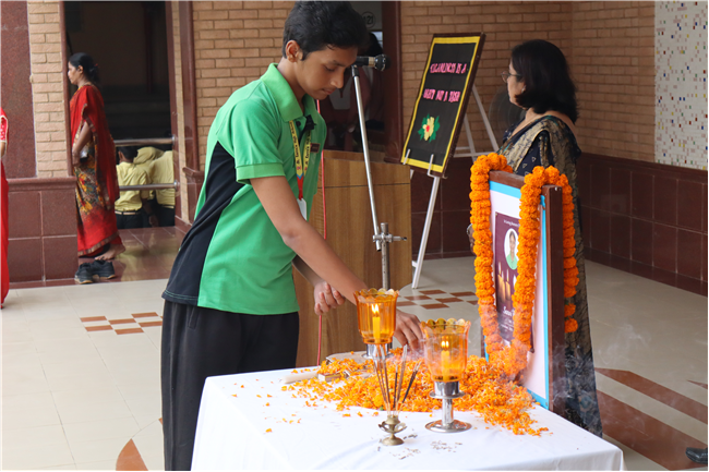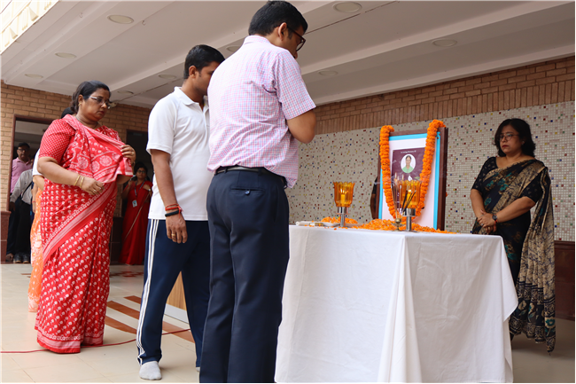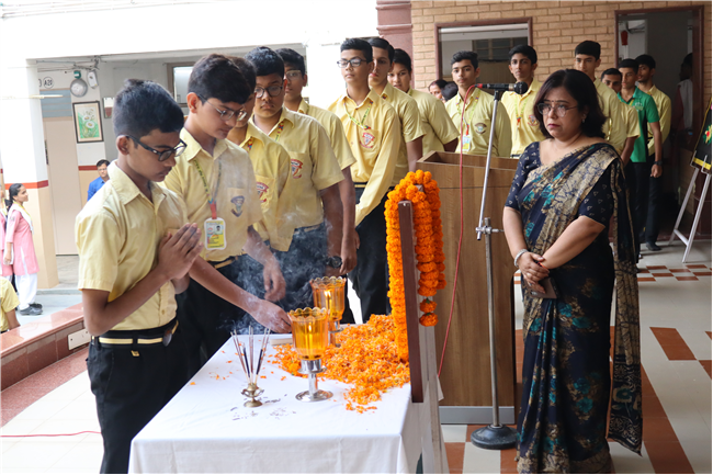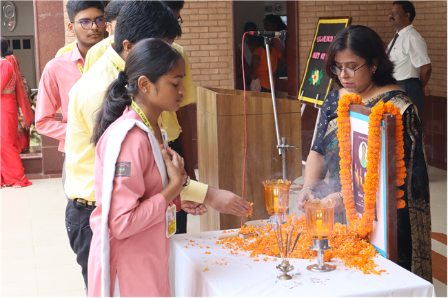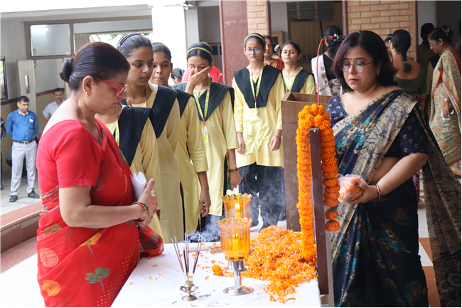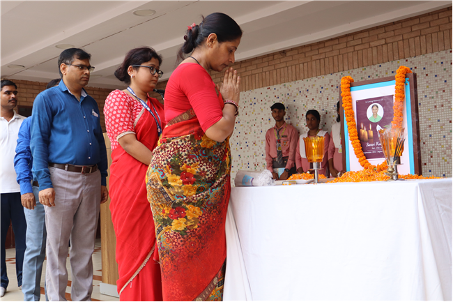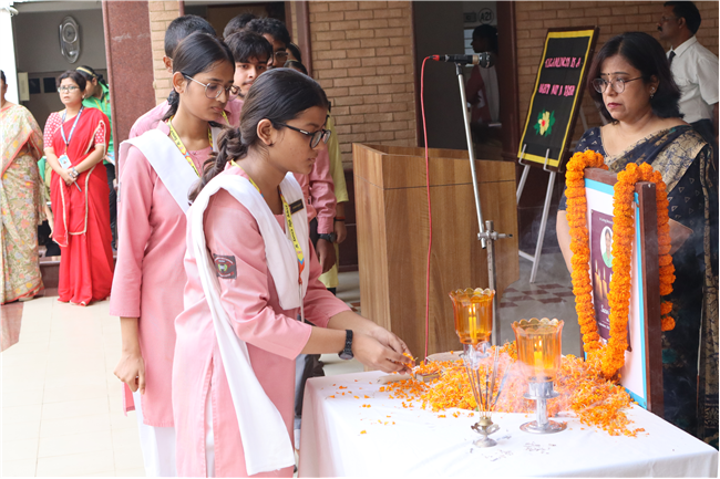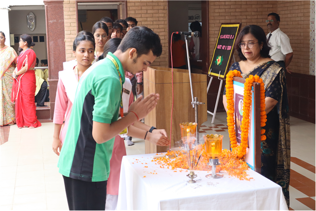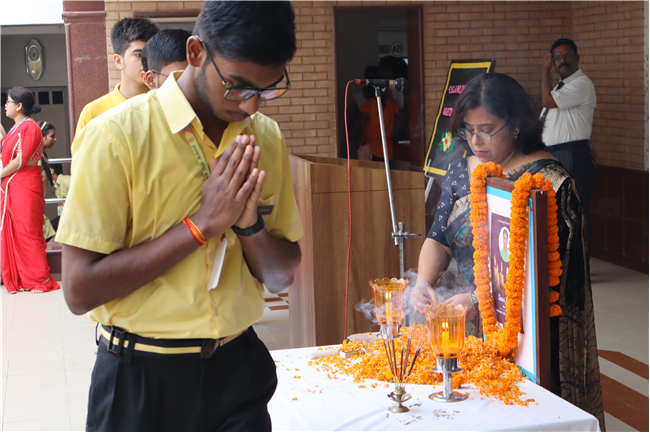 The teaching fraternity, student council members, coordinators, and the Plus Two In-charge came together to offer flowers and prayers before Sanvi’s photograph which was placed at the assembly as a mark of respect and remembrance.