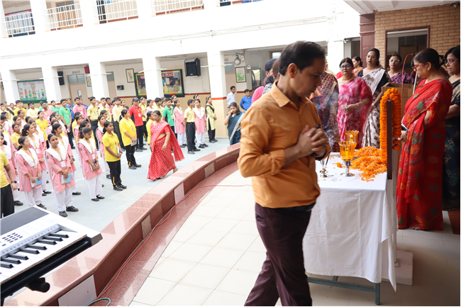 In the morning assembly, Principal Ma’am, Mrs. Seema Singh shared her grief with the students and staff, remembering Sanvi as a bright and gentle child. A special prayer service was led by Vice Principal Sir for the eternal peace of her soul. Class Teacher, Mrs. Ritu Mehrotra expressed her heartfelt emotions and recalled fond memories of Sanvi.