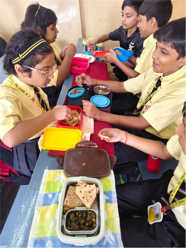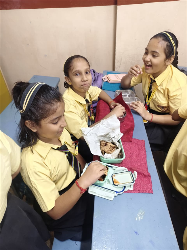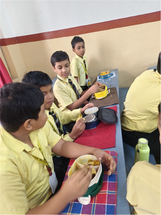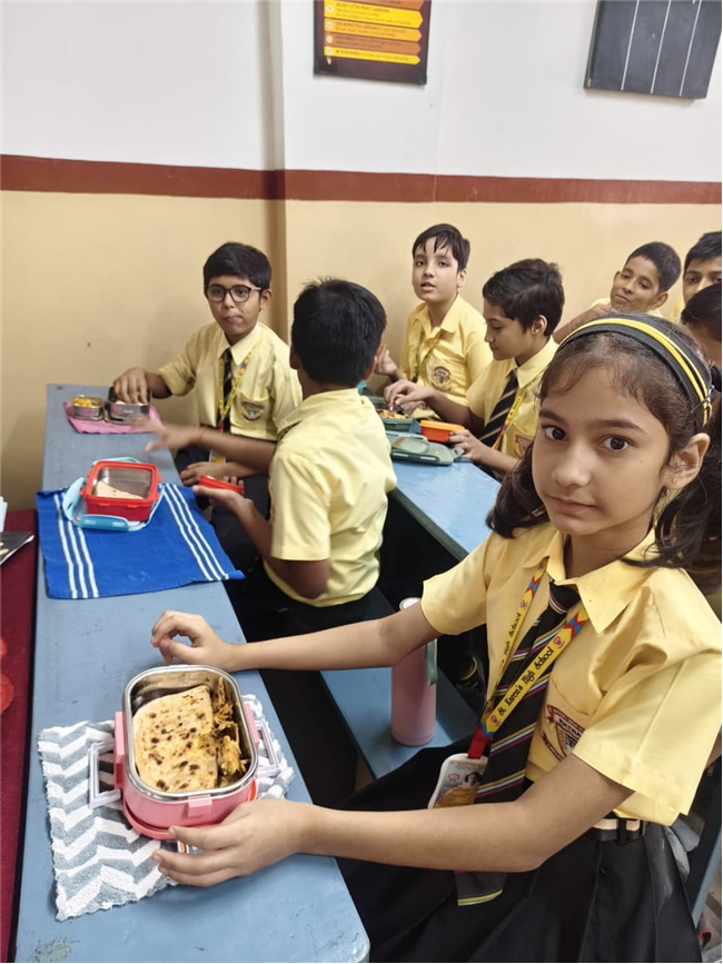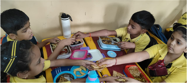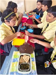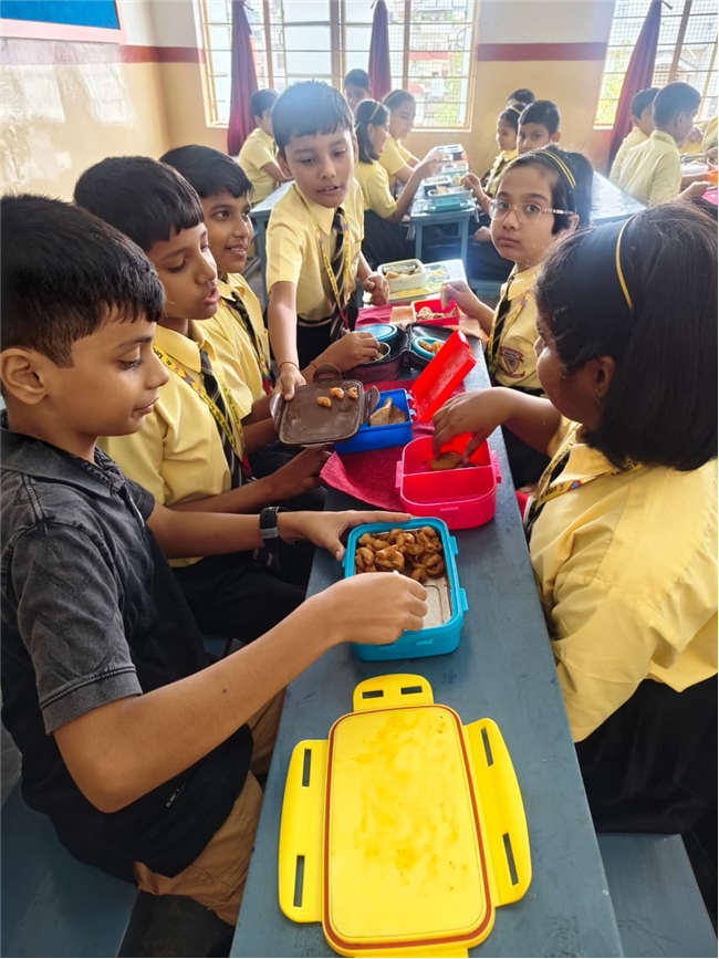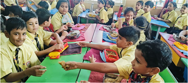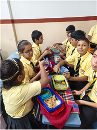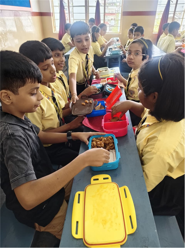 The joy continued as students engaged in tiffin sharing, exchanging homemade treats with their friends. This simple act of sharing not only brought smiles to young faces but also strengthened the bonds of friendship and togetherness.