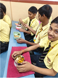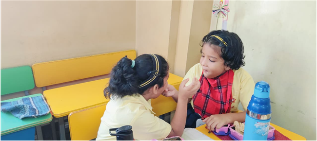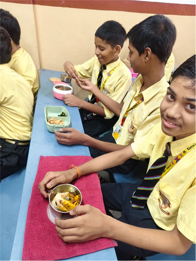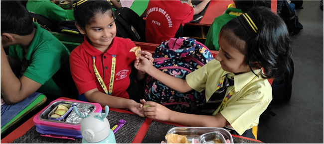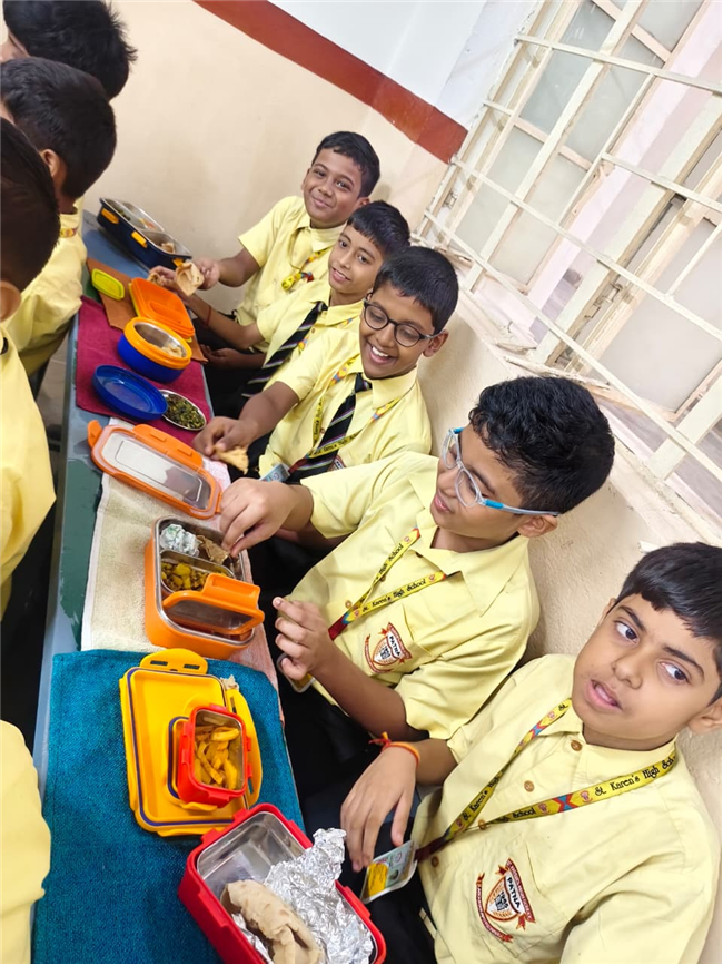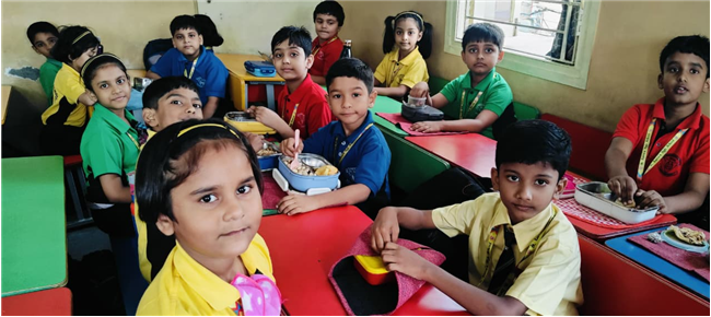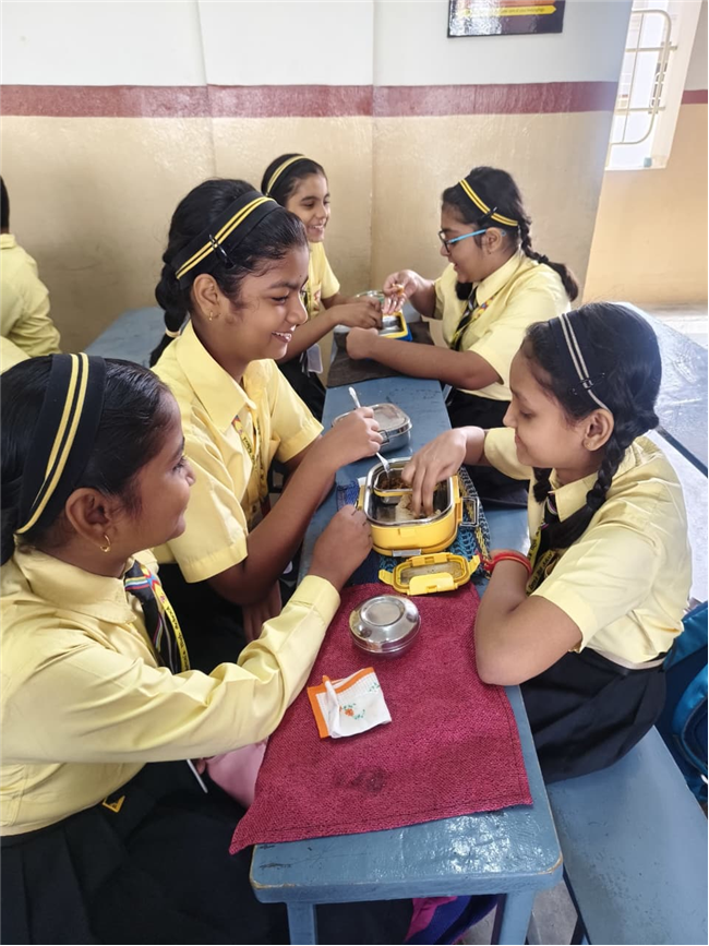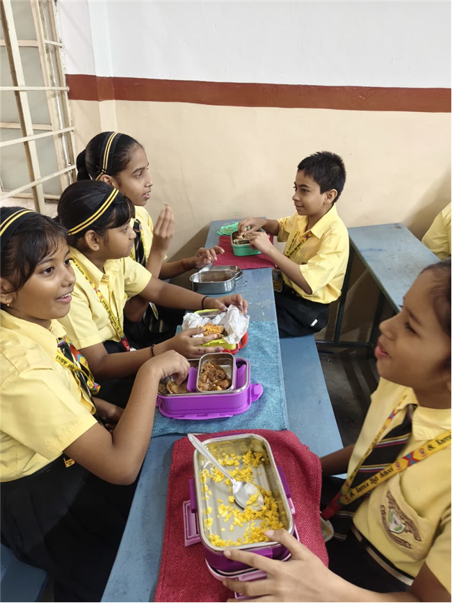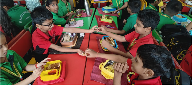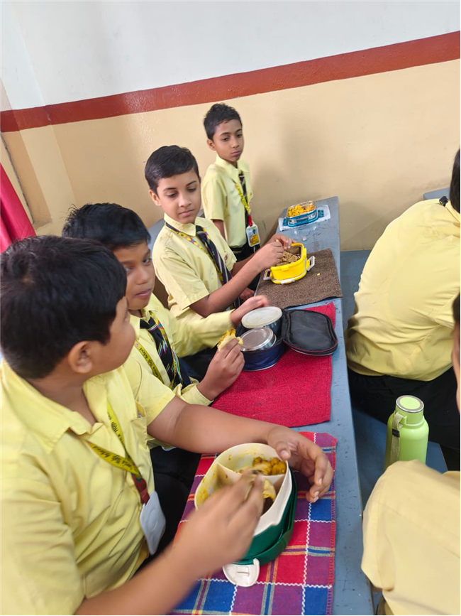 The joy continued as students engaged in tiffin sharing, exchanging homemade treats with their friends. This simple act of sharing not only brought smiles to young faces but also strengthened the bonds of friendship and togetherness.
