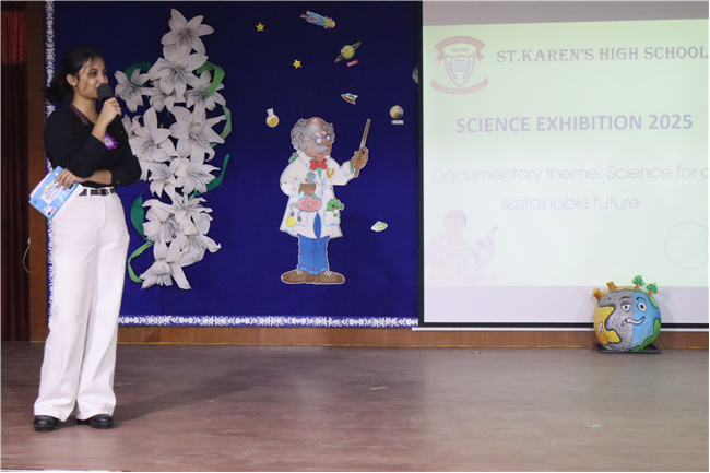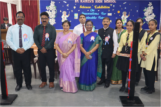 St. Karen’s High School organised a Science Exhibition on November 10 for students of Classes VI to VIII on the theme “Innovation for a Sustainable Future.” The program began with a welcome address and theme introduction, followed by the lighting of the lamp and a prayer. Principal Mrs. Seema Singh addressed the gathering, encouraging students to think creatively for a greener, sustainable world. A documentary on the theme was then presented, highlighting innovations that contribute to sustainability. The exhibition was declared open, and participants showcased their models and projects before the judges. After the evaluation and remarks by the judges, prizes were distributed to the winners. An interview with the top winner gave insight into their innovative ideas.