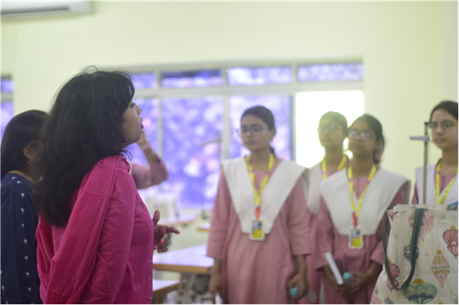 Description: Humanities students of Class 12 visited the NIFT Patna campus on 2nd May 2025. The students were introduced to the different subjects offered at the 8th-ranked fashion institute nationally. Faculty members gave the students a tour of the campus highlighting NIFT's commitment to innovation and inclusivity. Students visited various labs including Design Collection, Fashion Design, Leather, and Mechatronics Labs where fashion merges with robotics and IoT. Director Col. Rahul Sharma gave an overview of the demands of a course in NIFT, emphasizing that "In fashion, the sky is the limit."