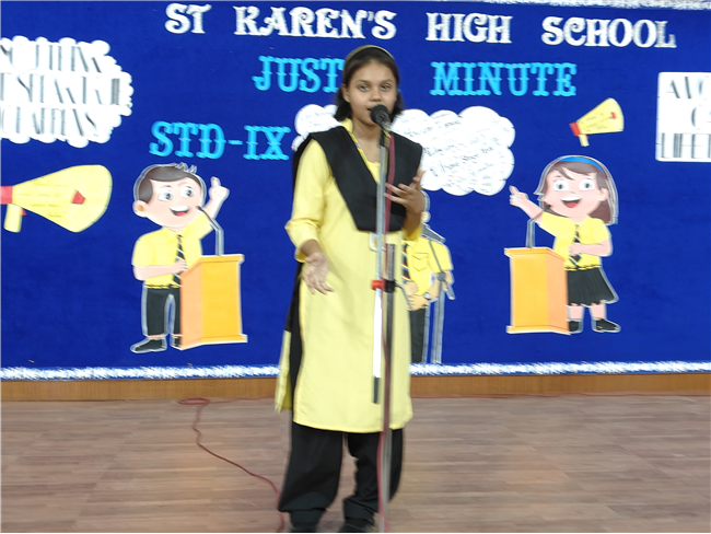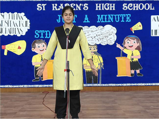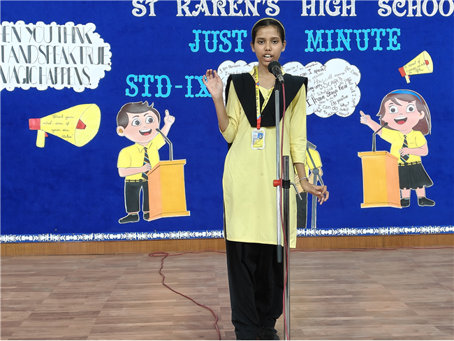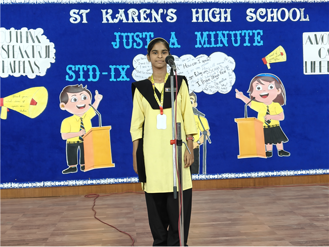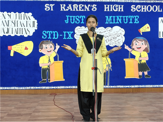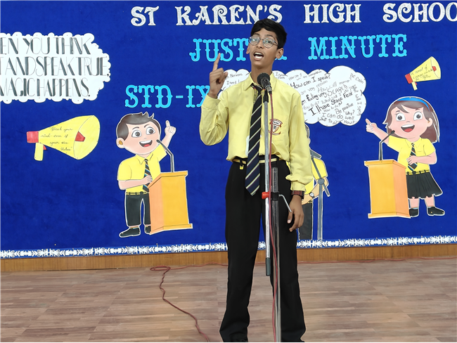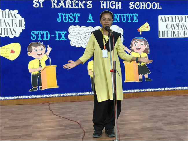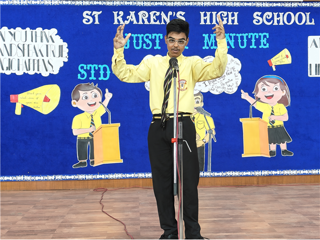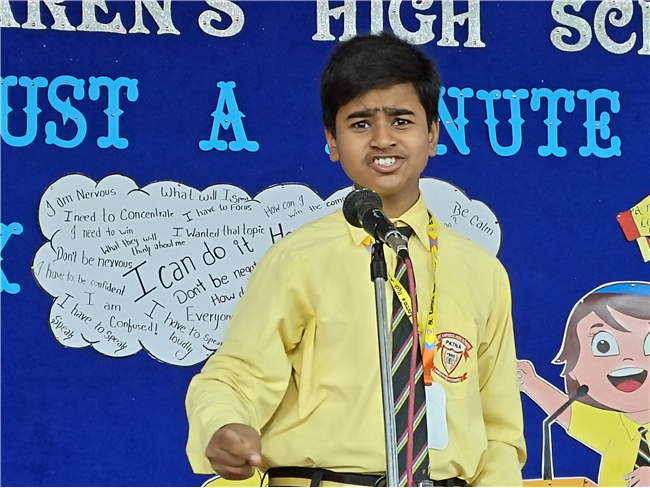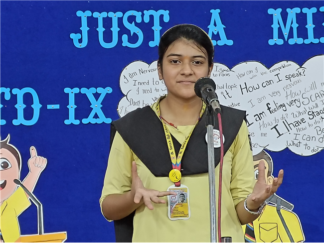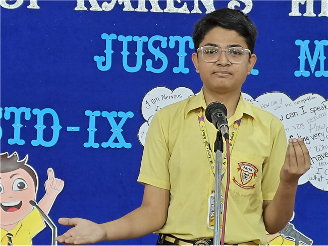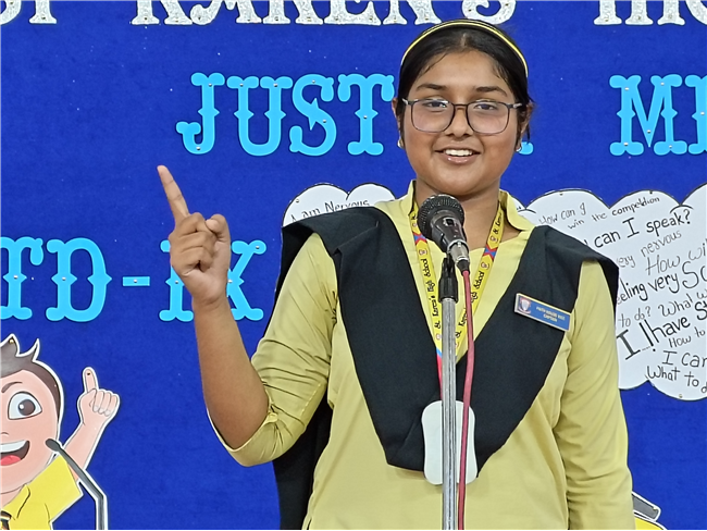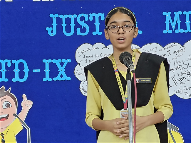 Description: An English elocution competition called J.A.M – “Just A Minute” for class IX was organised in Pamela Hall on 8th May 2025. Sixteen students from across the sections participated in it. All the participants spoke and expressed themselves with much verve and eloquence. It was a keenly contested event, so much so that there was a tie for the 3rd position. The names of the winner are as followed • Shivanshu - 9 H – 1st position • Vaishnavi – 9 F – 2nd position • Sanskriti Jha- 9I – 3rd position • Vedanshi Madhav - 9J – 3rd position The winners were given the Merit Certificates and the Participation Certificates were given to rest of the participants MS. Huma Jerine Thomas and MR. Shahnawaz Ahamed were the Judges for the event.