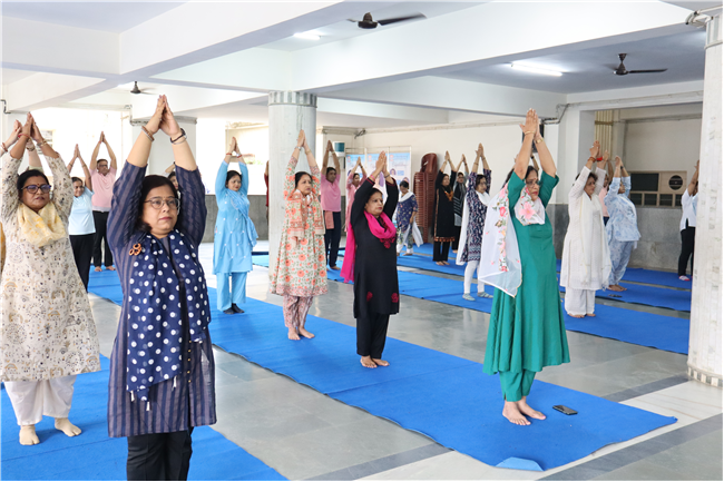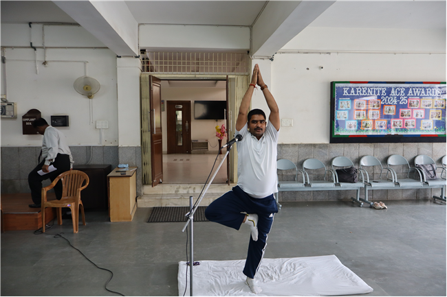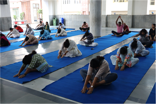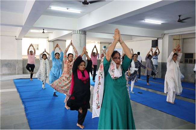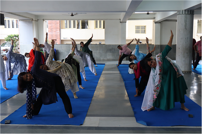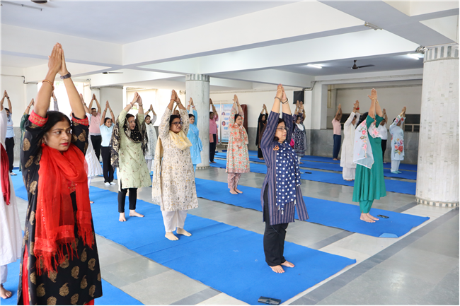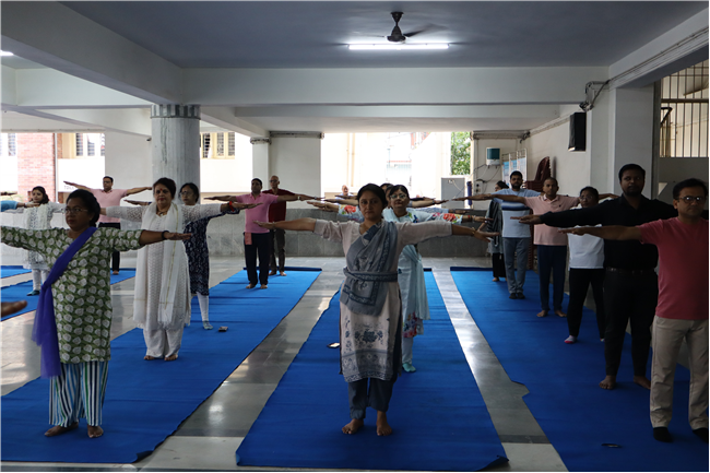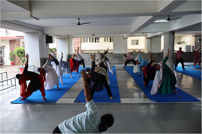 In commemoration of International Yoga Day, a special program was organized on 21st June 2025.The event witnessed the enthusiastic participation of the principal, coordinators, and teachers.They actively engaged in performing a variety of yoga asanas,including Vrikshasana (Tree Pose),Tadasana (Mountain Pose), Mandukasana (Frog Pose),Bhadrasana (Butterfly Pose),Trikonasana (Triangle Pose)and Pranayama (Breathing exercises).