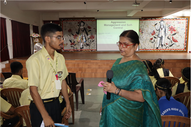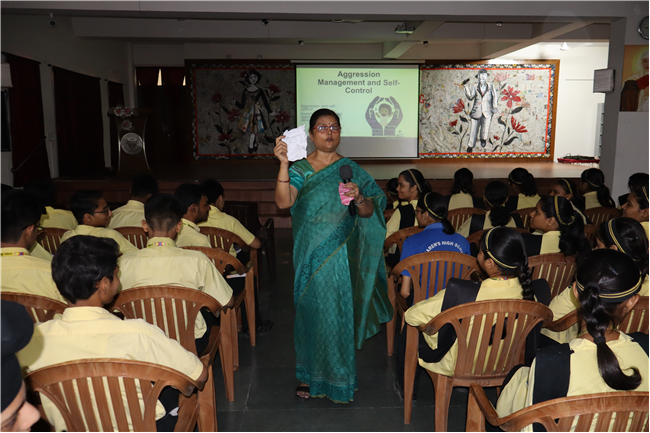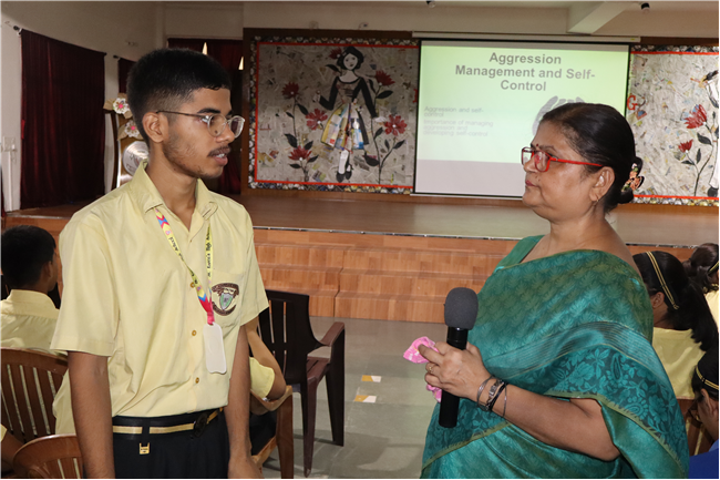 When they said that they couldn't,they were told how these negative things like aggression,bullying envy etc affect our personality and how we can get rid of it. They were also given a chance speak and share their experience/s of aggression. The students found the session interesting and were vocal about the problems they are going through.