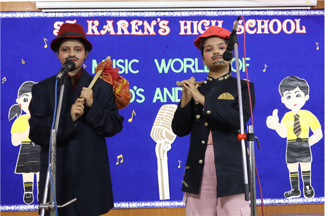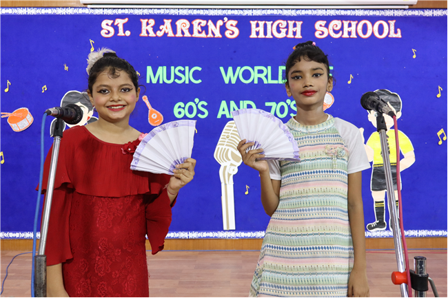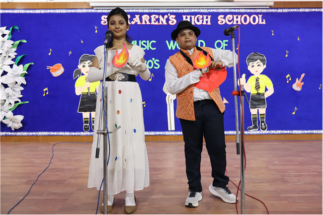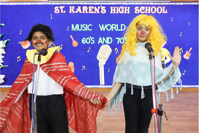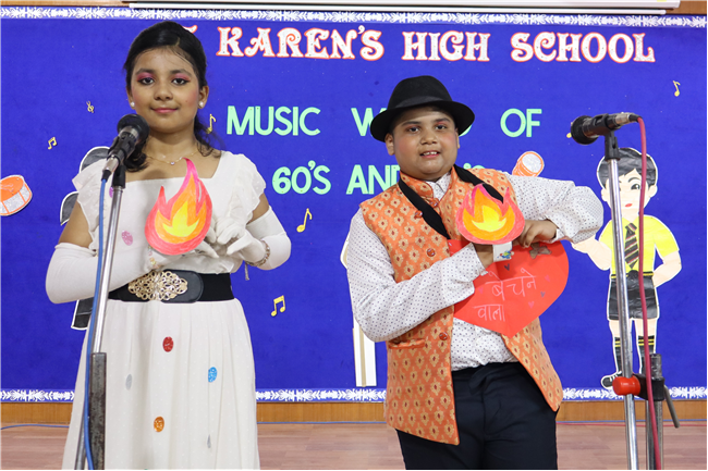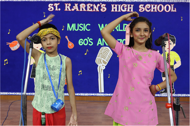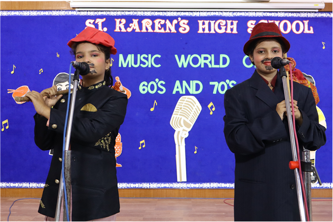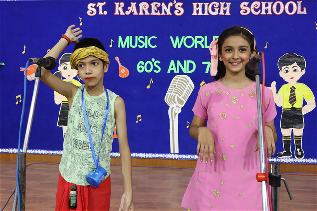 Description: On 11th July 2025, in Pamela Hall, the students of STD-5 came together to present beautiful and melodious ‘Duet Singing Competition ‘ on the theme ‘Music World of 60’s and 70’s’. The competition showcased the extraordinary talent of the students. With great enthusiasm and a delightful sense of melody, the students performed a duet that mesmerized the audience and transformed the atmosphere with the era of 60’s and 70’s’. The selection of songs and presentation was awesome. The programme was appreciated by the dignitaries. The winners of the competition were 1st – Salman Karim and Tejashee Jha (5A) 2nd – Bhavya Sharma and Rudra Prashar. (5D) 3rd- Aradhya and Saanvi (5B)
